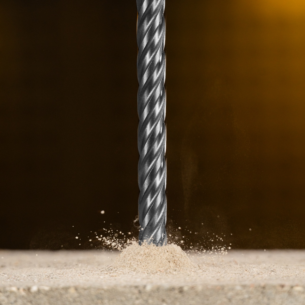Наличие клапана для сброса давления Бур по бетону, цельная крестовая пластина, 12x265 мм, SDS PLUS Denzel