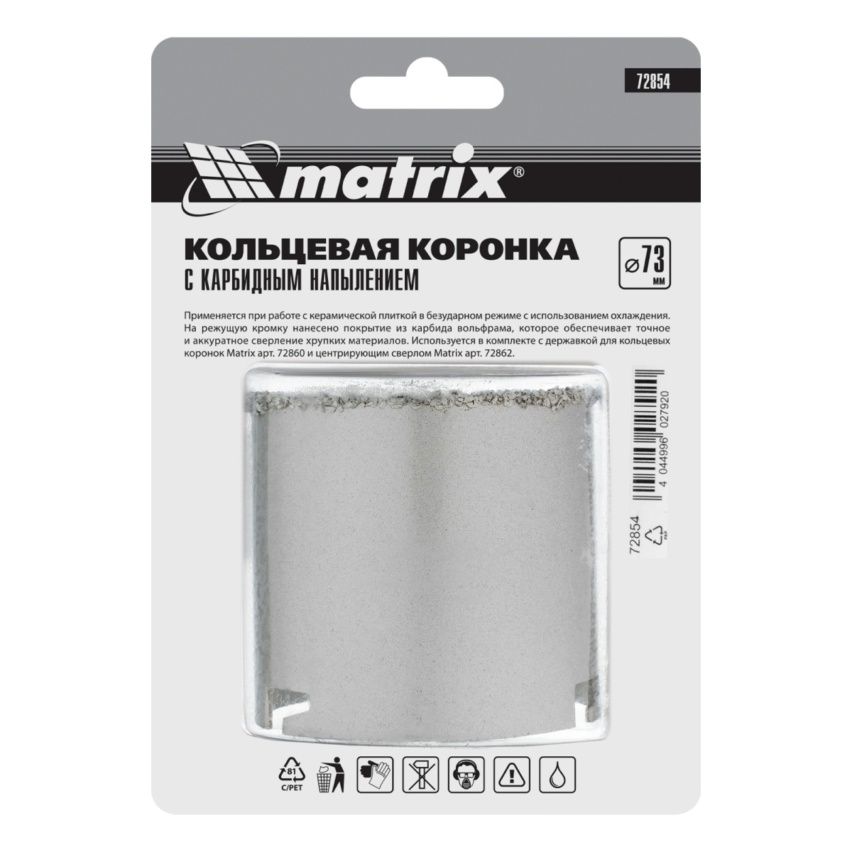 Купить Кольцевая коронка с карбидным напылением, 73 мм Matrix V2765 по лучшей цене с доставкой - интернет магазин №1 в России