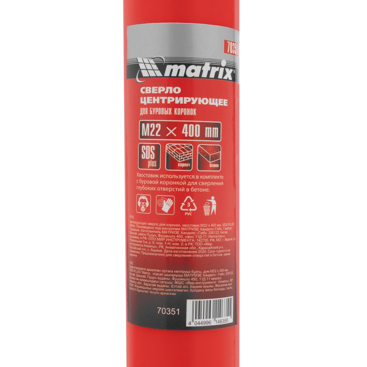 Наличие клапана для сброса давления Центрирующее сверло для коронок, хвостовик M22 х 400 мм, SDS Plus Matrix