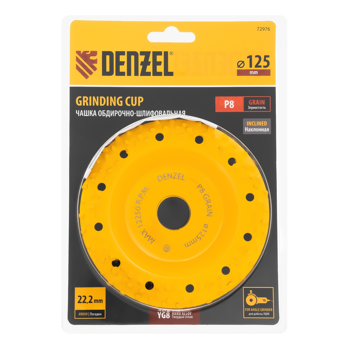 Купить Чашка твёрдосплавная зачистная,125 мм, Наклонная, крупное зерно #8 Denzel V7576 по лучшей цене с доставкой - интернет магазин №1 в России