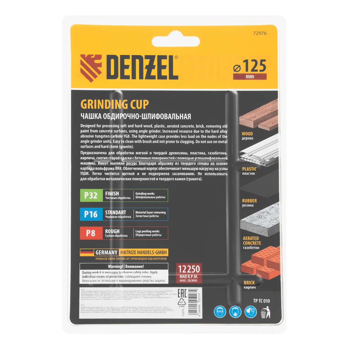 Наличие клапана для сброса давления Чашка твёрдосплавная зачистная,125 мм, Наклонная, крупное зерно #8 Denzel