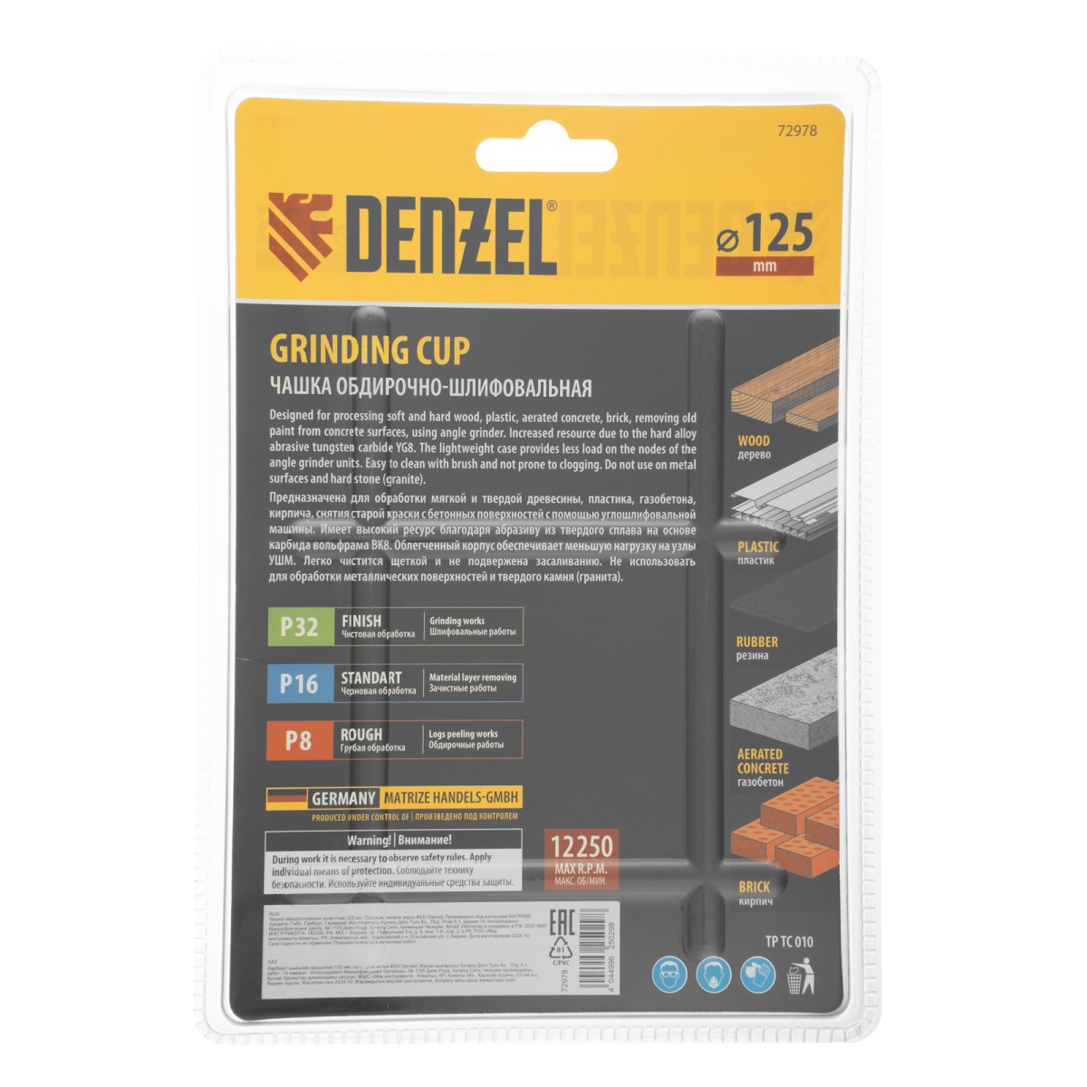 Купить Чашка твёрдосплавная зачистная,125 мм, Плоская, мелкое зерно #32// Denzel V7580 по лучшей цене с доставкой - интернет магазин №1 в России