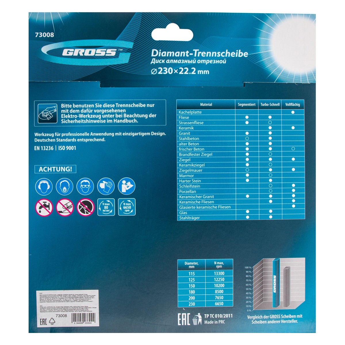 Диск алмазный, 230 х 22.2 мм, лазерная приварка сегментов, сухая резка Gross