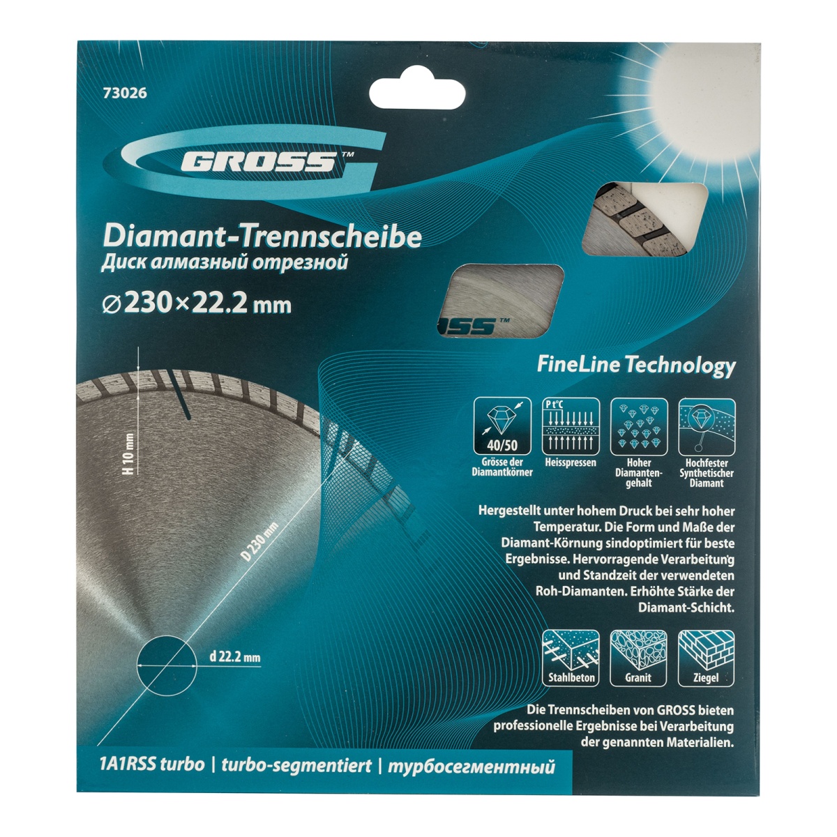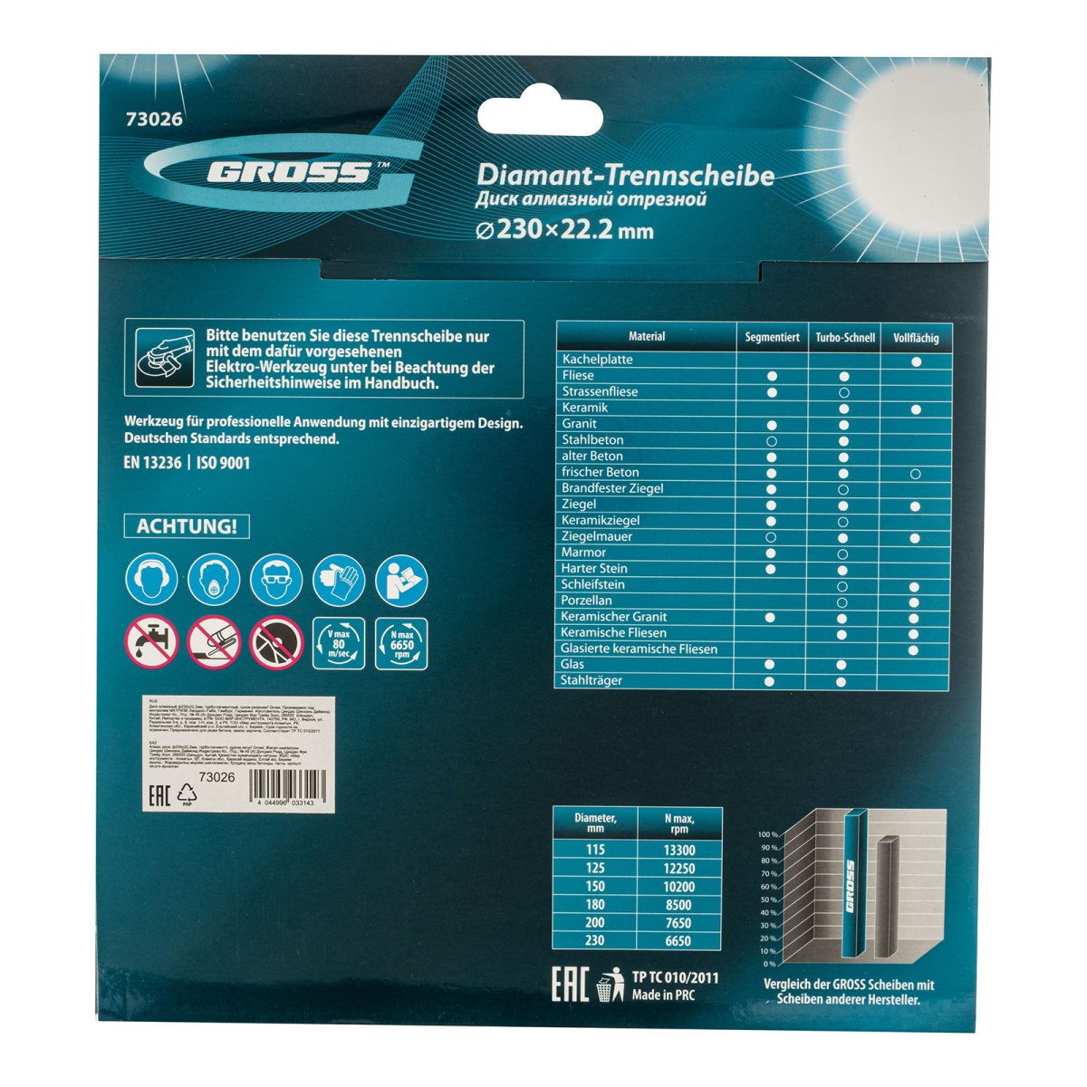 Диск алмазный, 230 х 22.2 мм, турбо-сегментный, сухая резка Gross