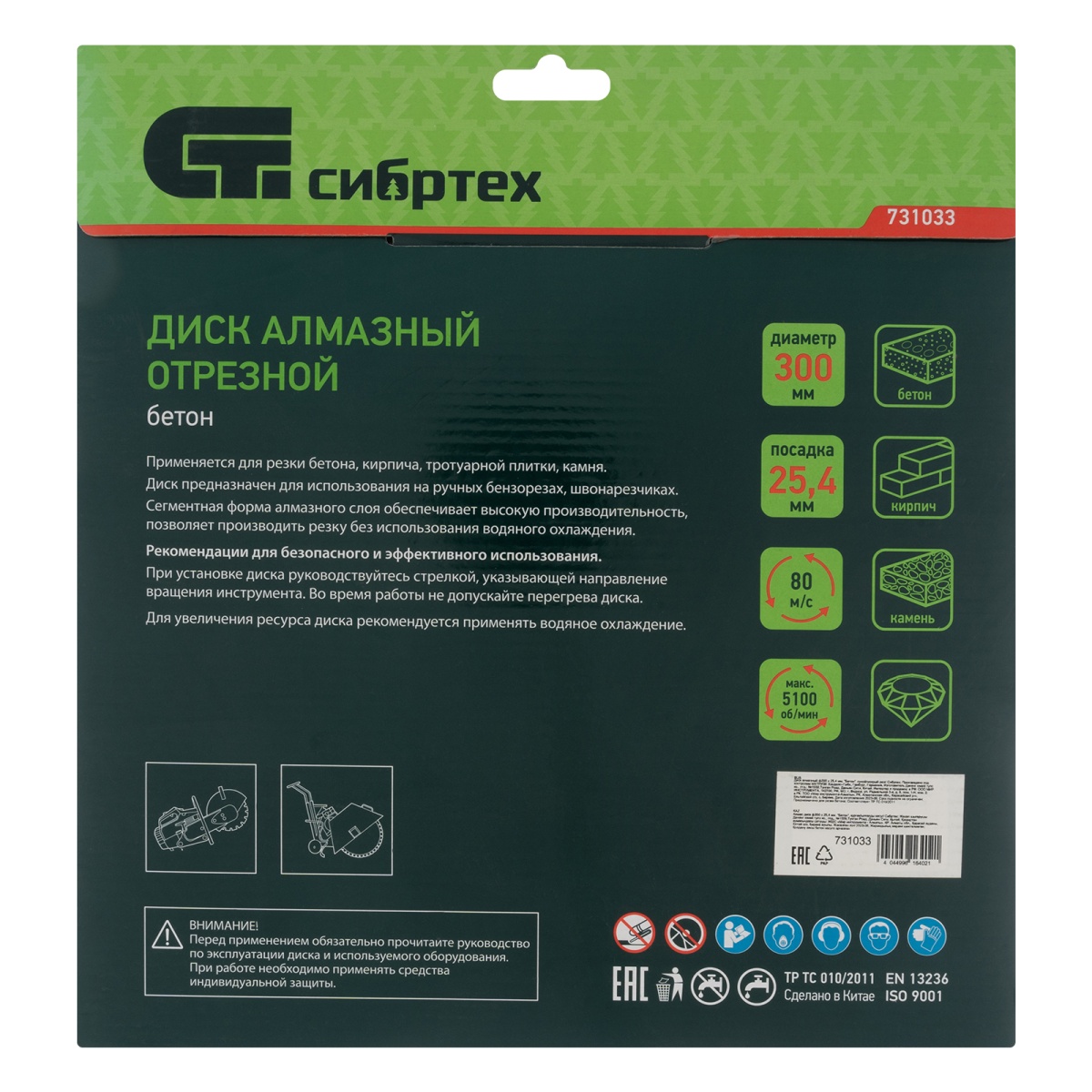 Наличие клапана для сброса давления Диск алмазный 300 х 25.4 мм, "Бетон", сухой/мокрый рез Сибртех