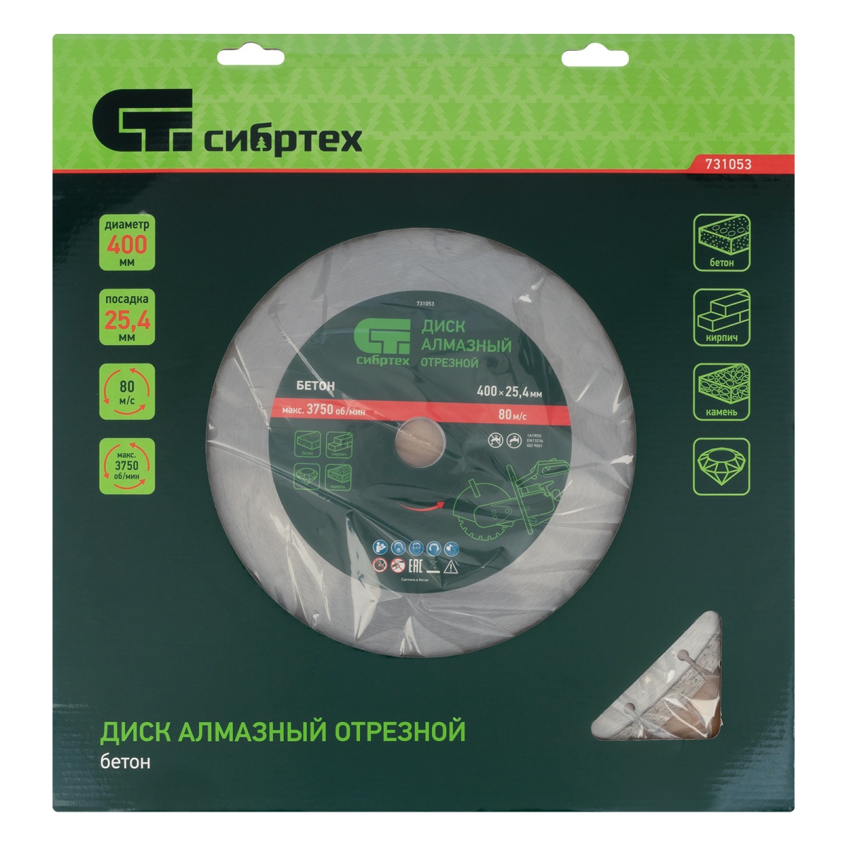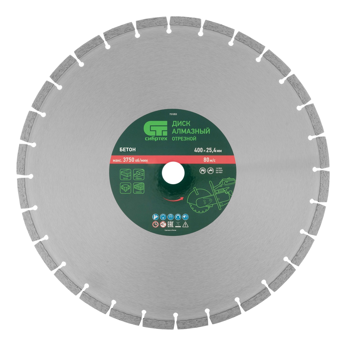 Купить Диск алмазный 400 х 25.4 мм, "Бетон", сухой/мокрый рез Сибртех V1595 по лучшей цене с доставкой - интернет магазин №1 в России