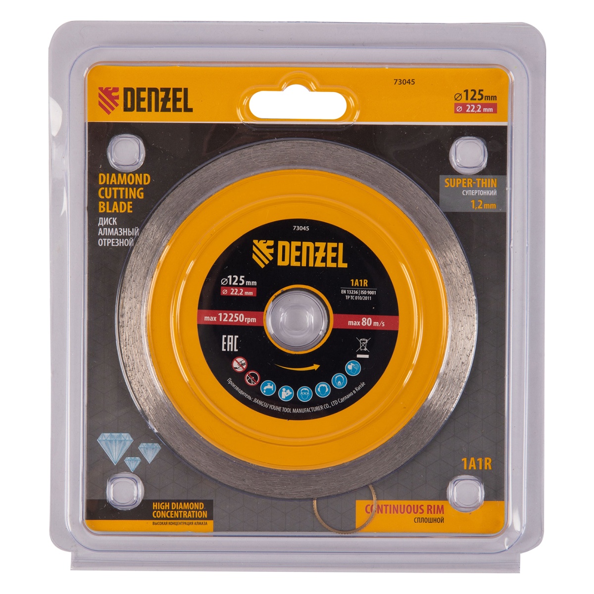 Купить Диск алмазный отрезной 125 х 22,2 мм, сплошной, супертонкий, горячий пресс, мокрое резание Denzel V1598 по лучшей цене с доставкой - интернет магазин №1 в России