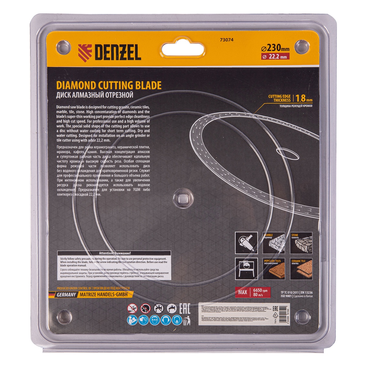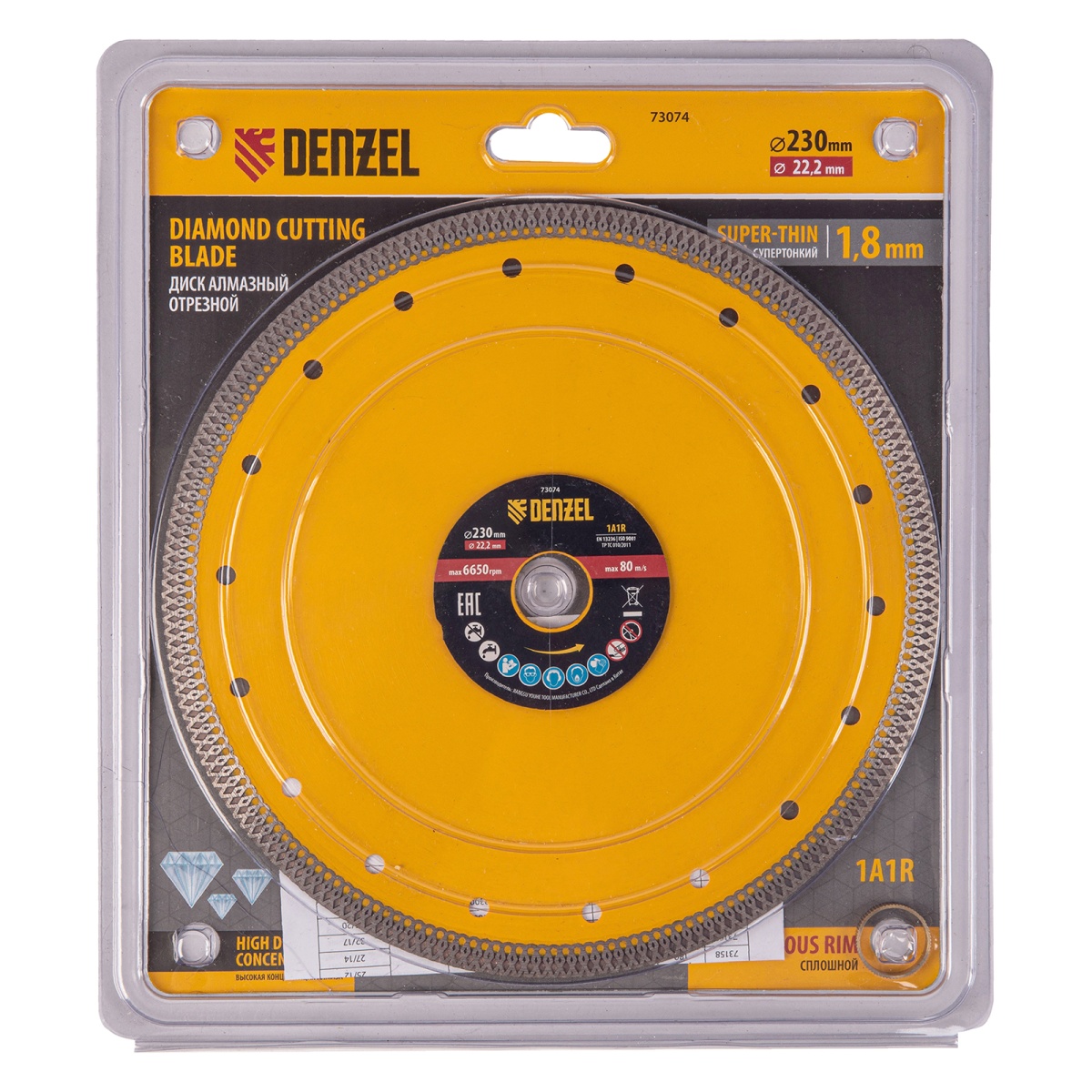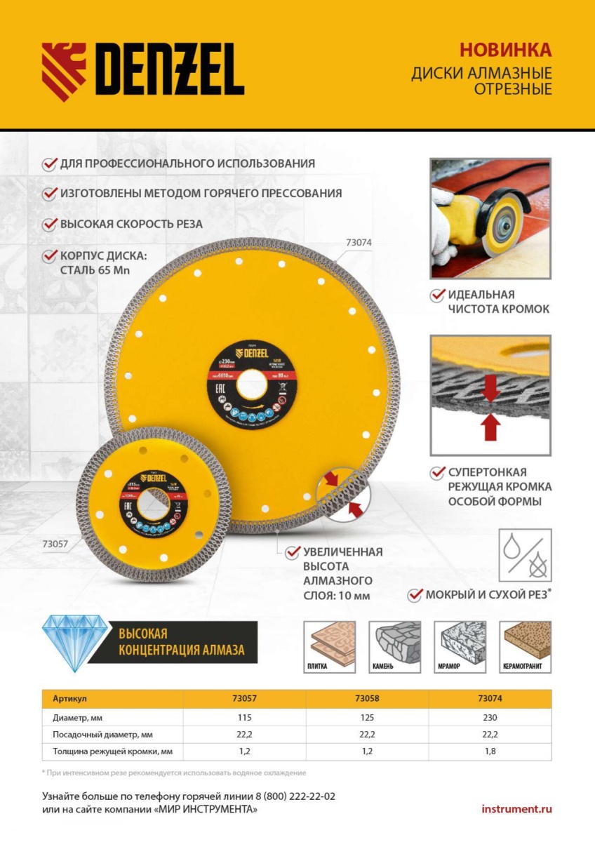 Купить Диск алмазный отрезной 230 х 22,2мм, сплошной, супертонкий, горячий пресс, сухой/мокрый рез Denzel V1599 по лучшей цене с доставкой - интернет магазин №1 в России
