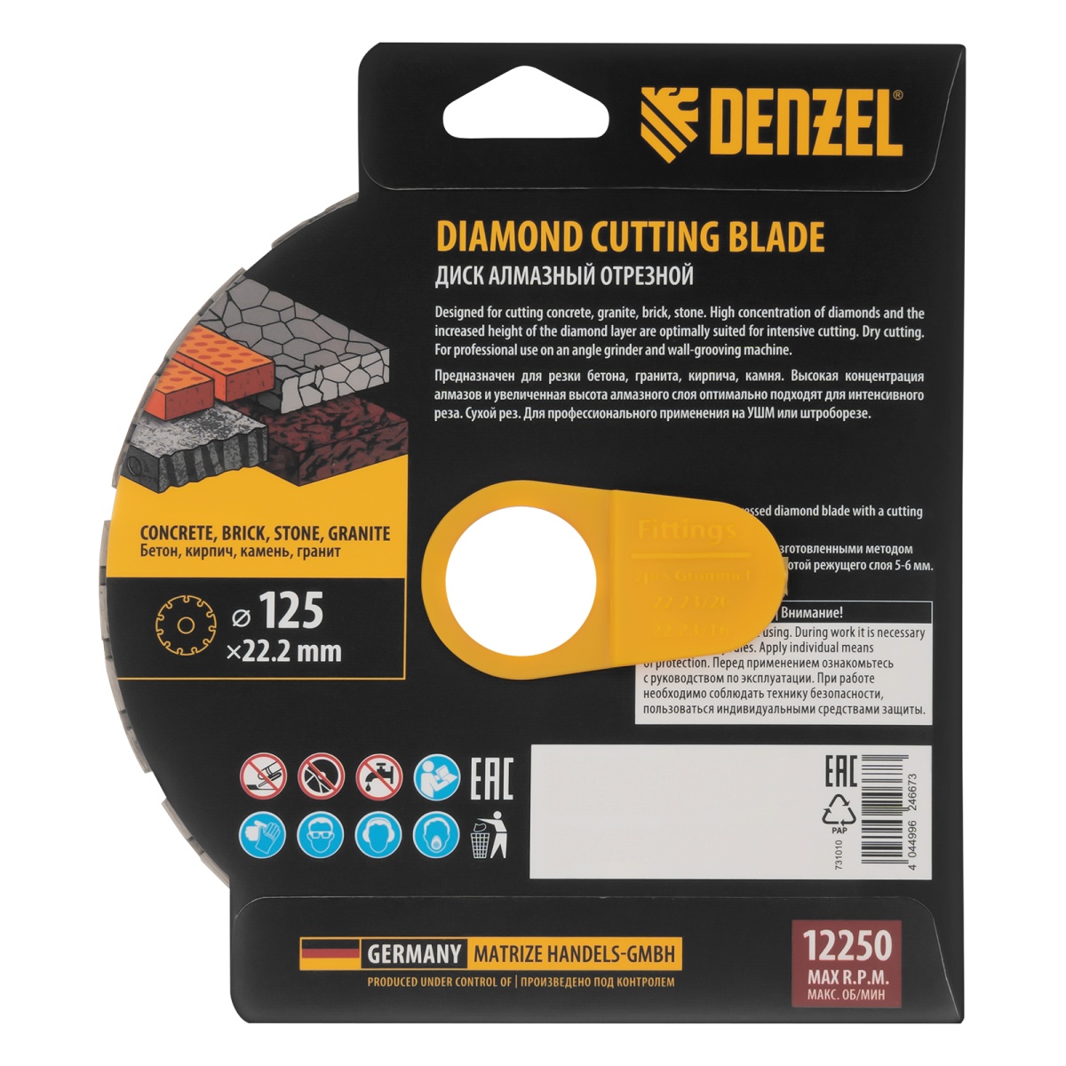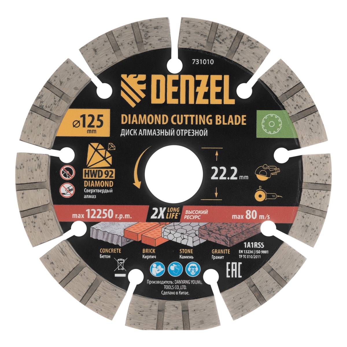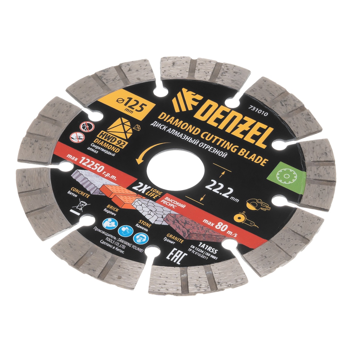 Купить Диск алмазный отрезной DENZEL, ф125 х 22.2 мм, сегментный, сухой рез, HWD92, круг, 731010 V1602 по лучшей цене с доставкой - интернет магазин №1 в России