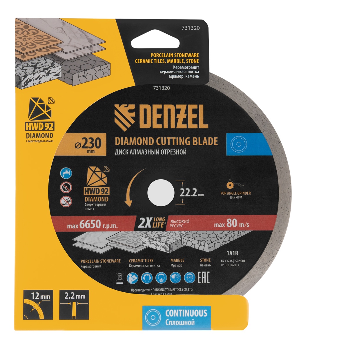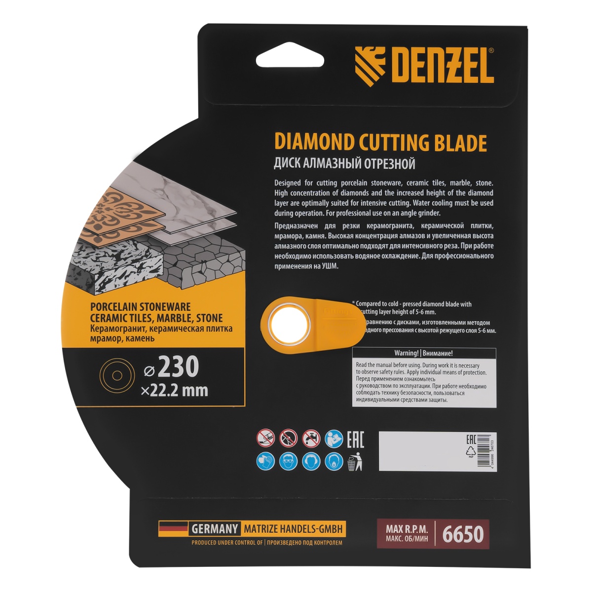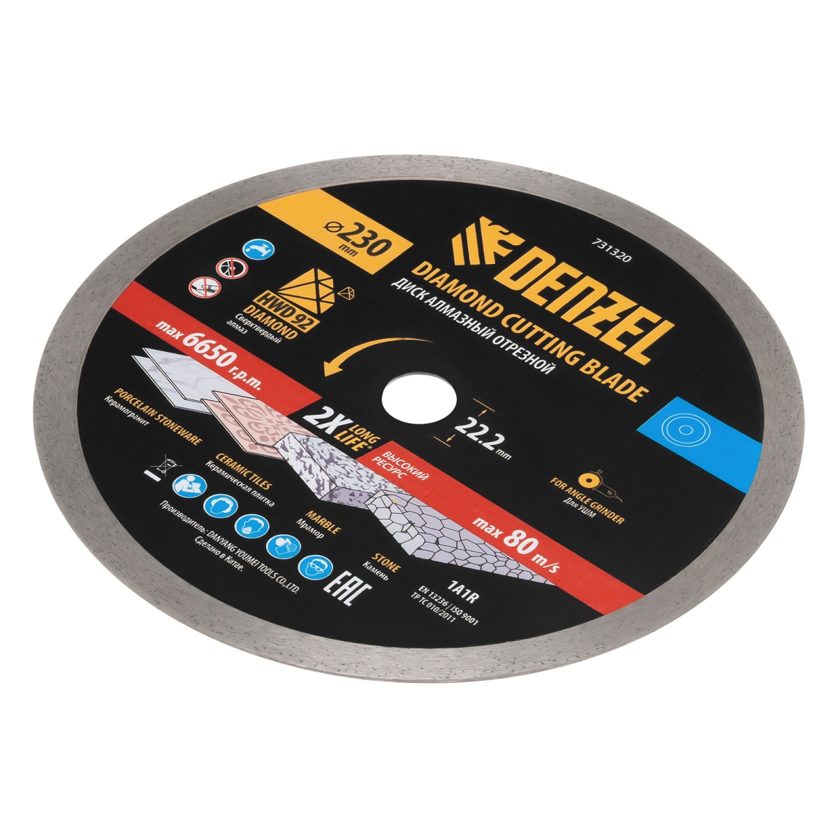 Купить Диск алмазный отрезной DENZEL, ф230 х 22.2 мм, сплошной, мокрый рез, HWD92, круг, 731320 V1605 по лучшей цене с доставкой - интернет магазин №1 в России
