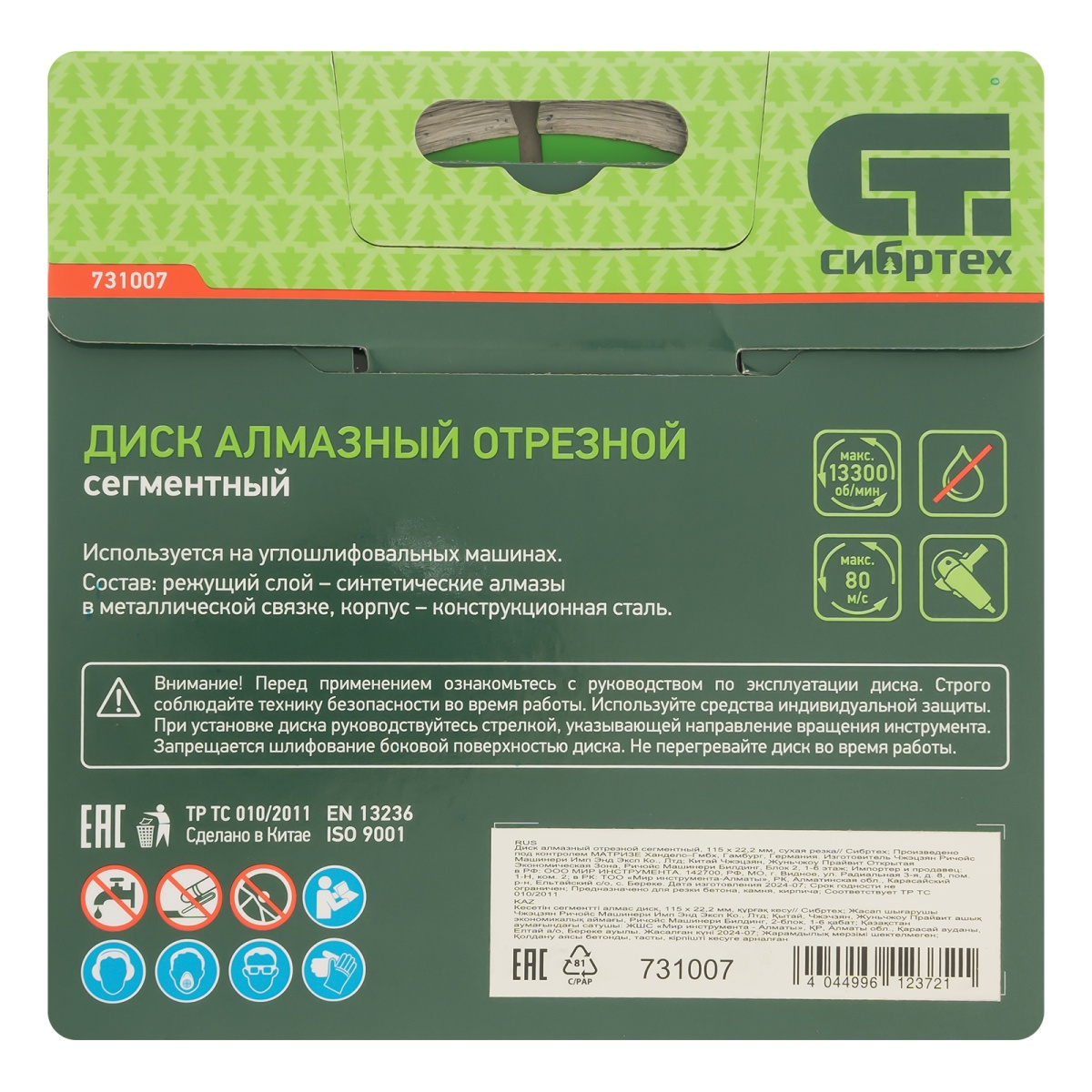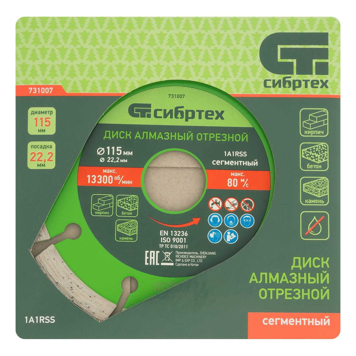 Купить Диск алмазный, отрезной сегментный, 115 х 22.2 мм, сухая резка Сибртех V1645 по лучшей цене с доставкой - интернет магазин №1 в России