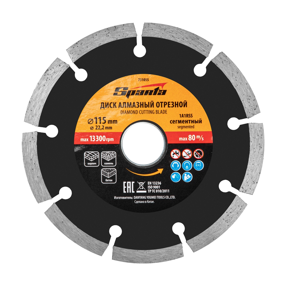 Диск алмазный, отрезной сегментный, 115 х 22.2 мм, сухая резка Sparta