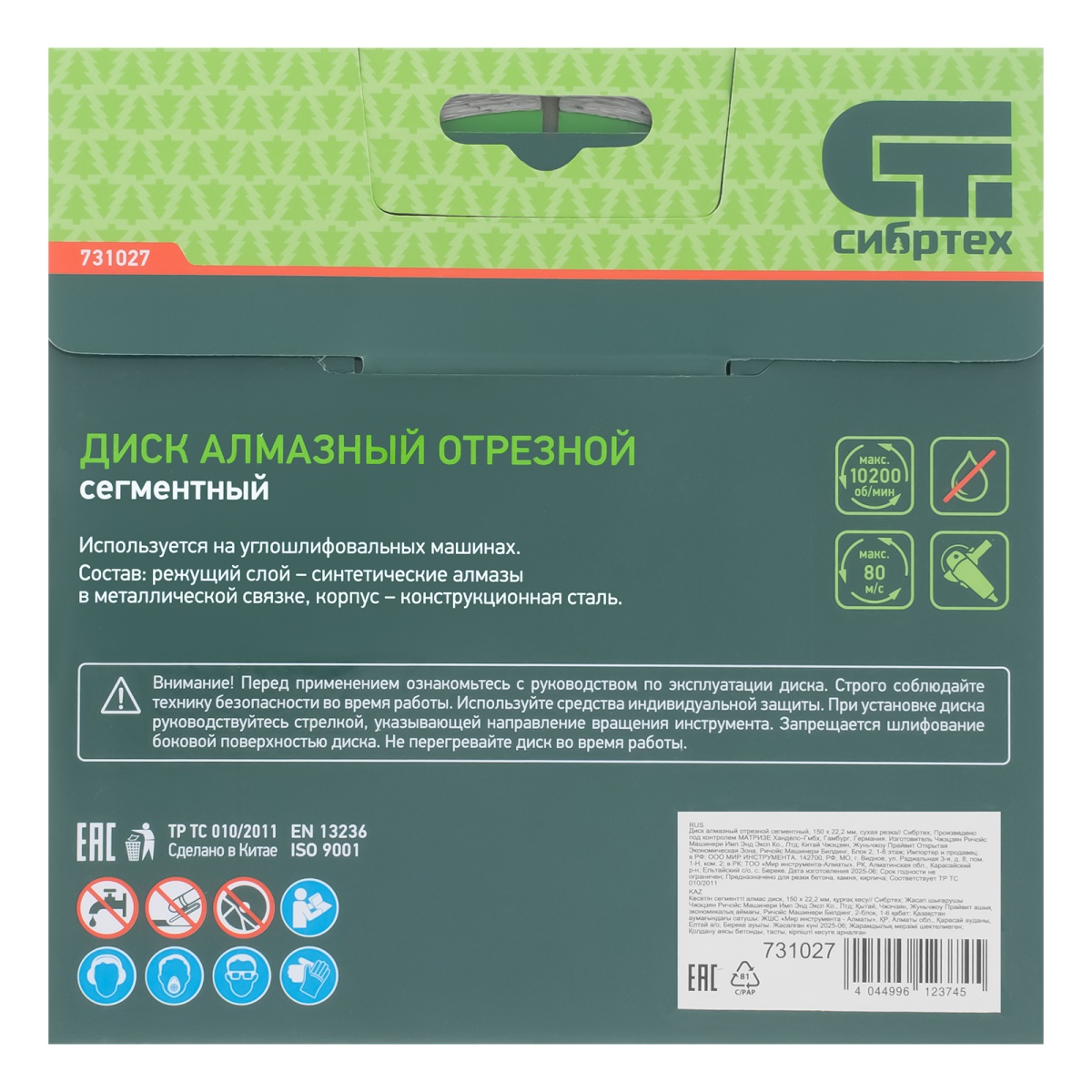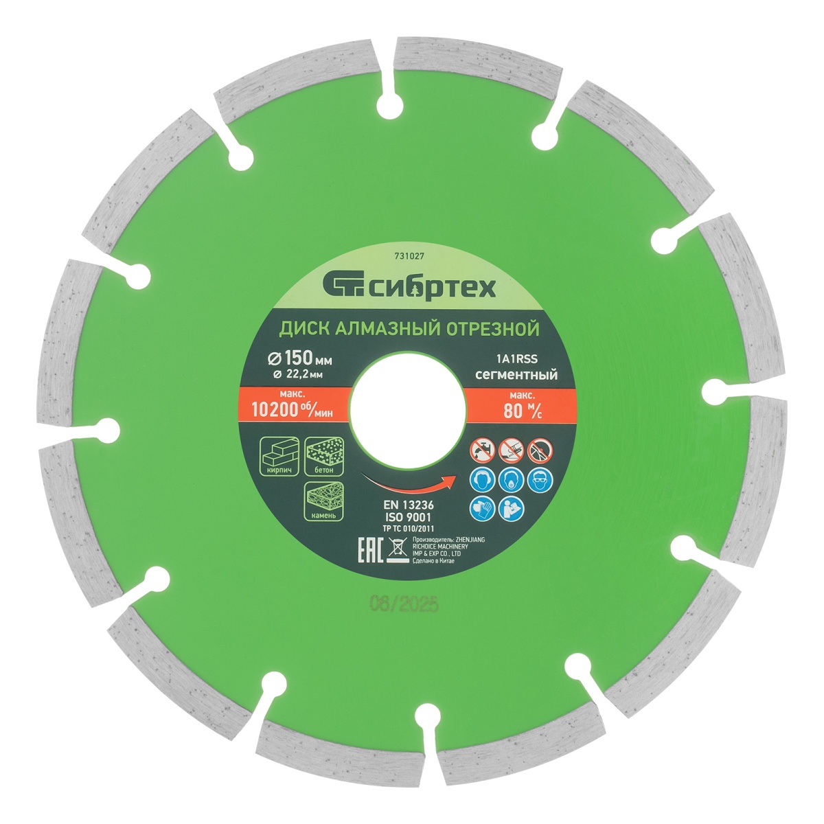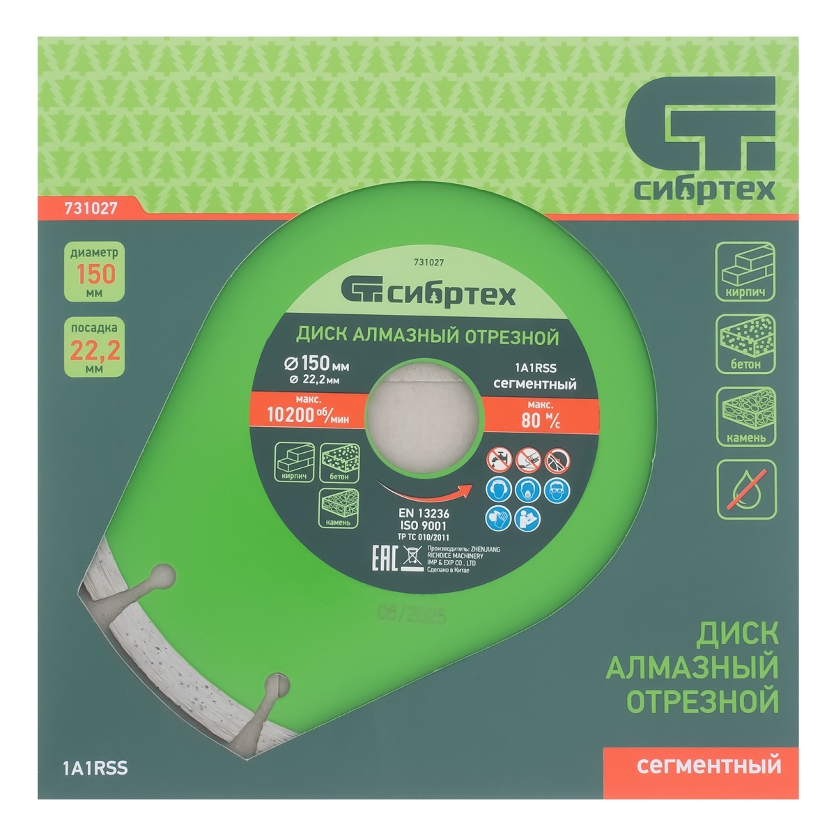 Купить Диск алмазный, отрезной сегментный, 150 х 22.2 мм, сухая резка Сибртех V1654 по лучшей цене с доставкой - интернет магазин №1 в России