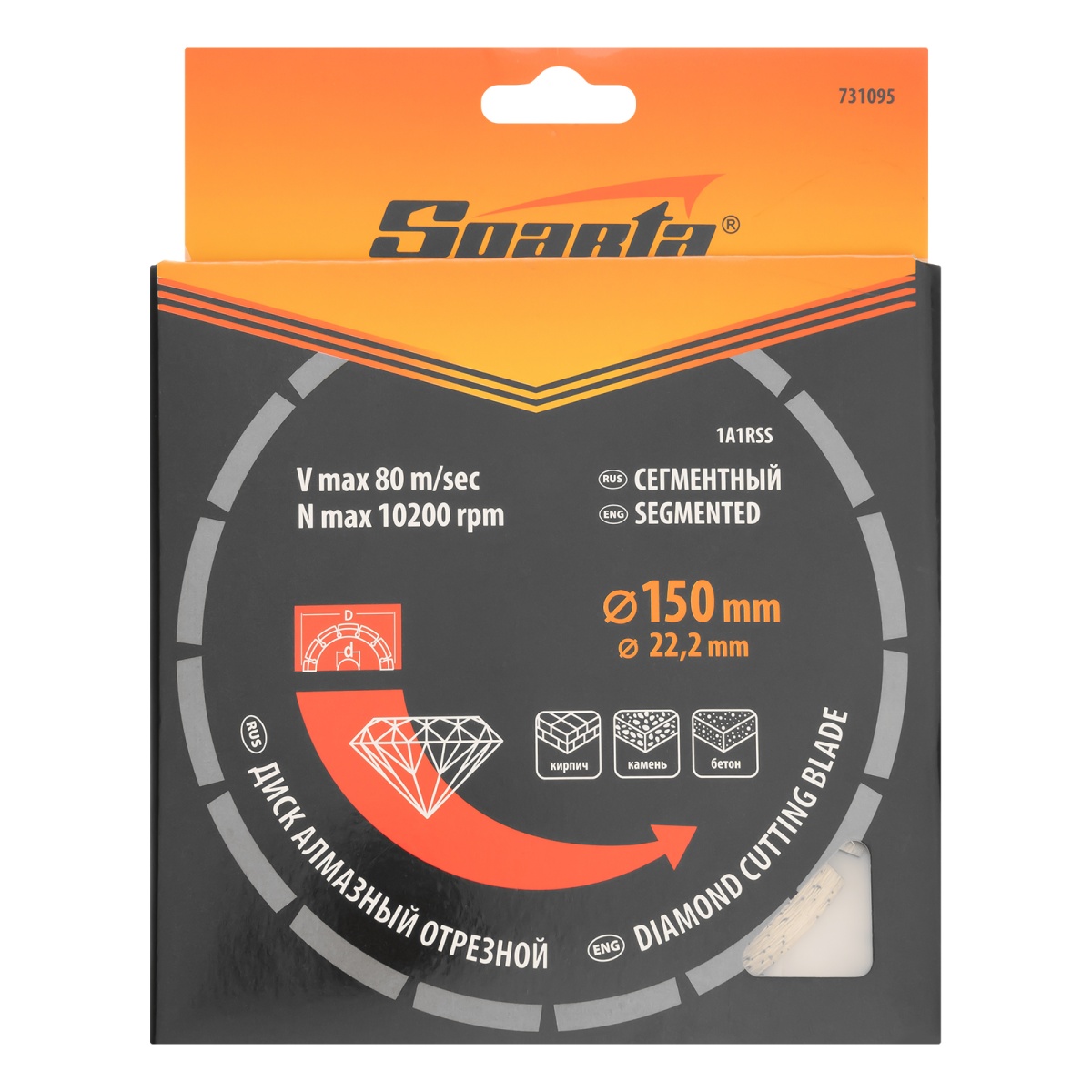 Диск алмазный, отрезной сегментный, 150 х 22.2 мм, сухая резка Sparta