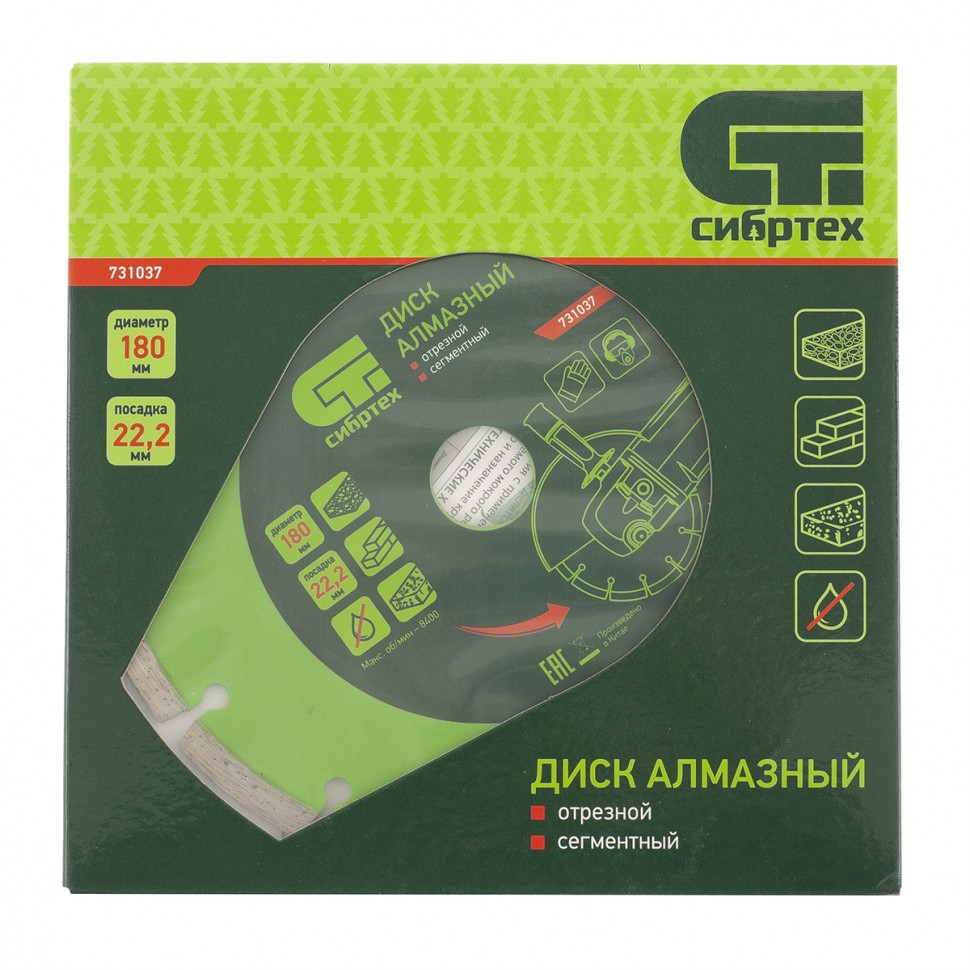 Купить Диск алмазный, отрезной сегментный, 180 х 22.2 мм, сухая резка Сибртех V1657 по лучшей цене с доставкой - интернет магазин №1 в России