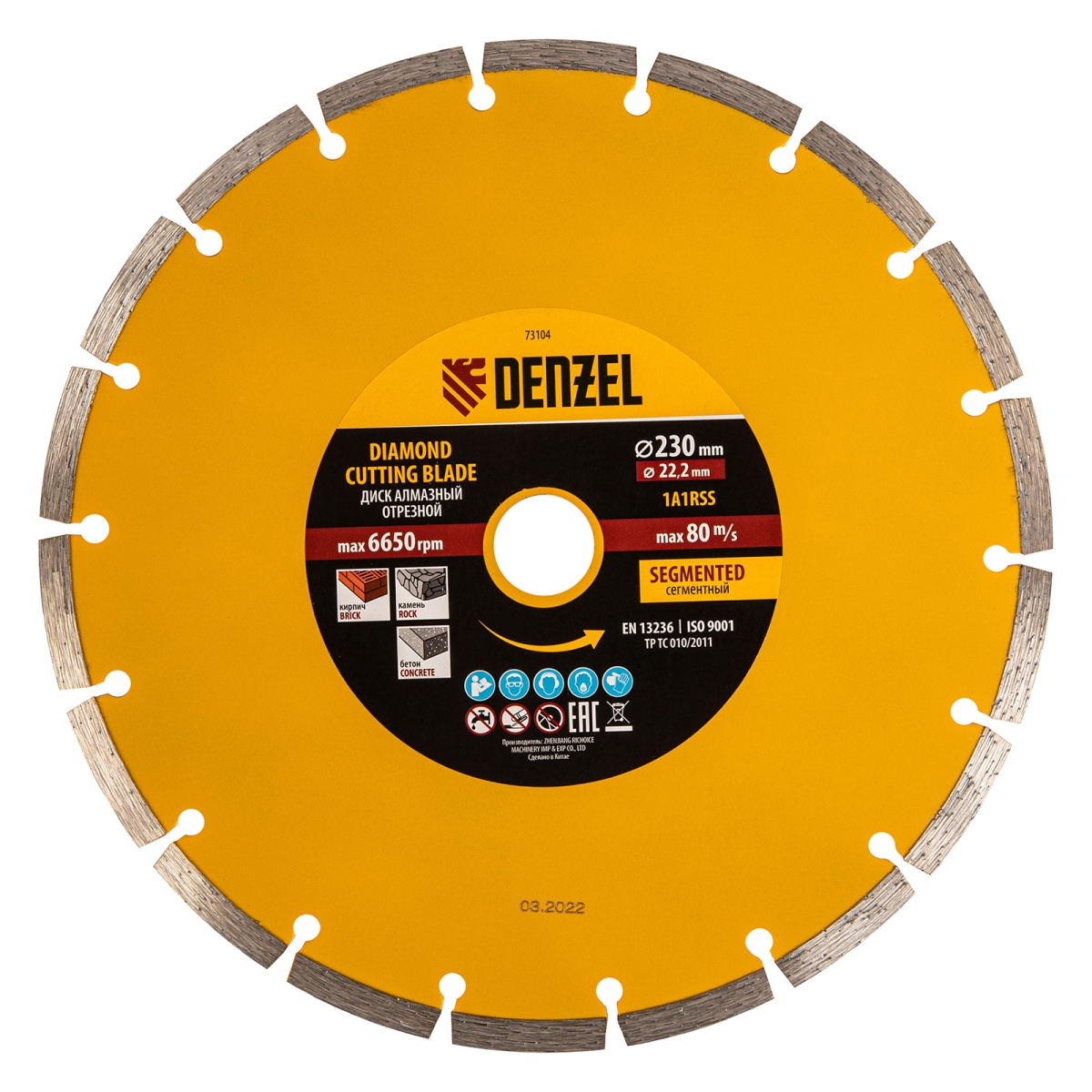 Купить Диск алмазный, отрезной сегментный, 230 х 22.2 мм, сухая резка Denzel V1659 по лучшей цене с доставкой - интернет магазин №1 в России