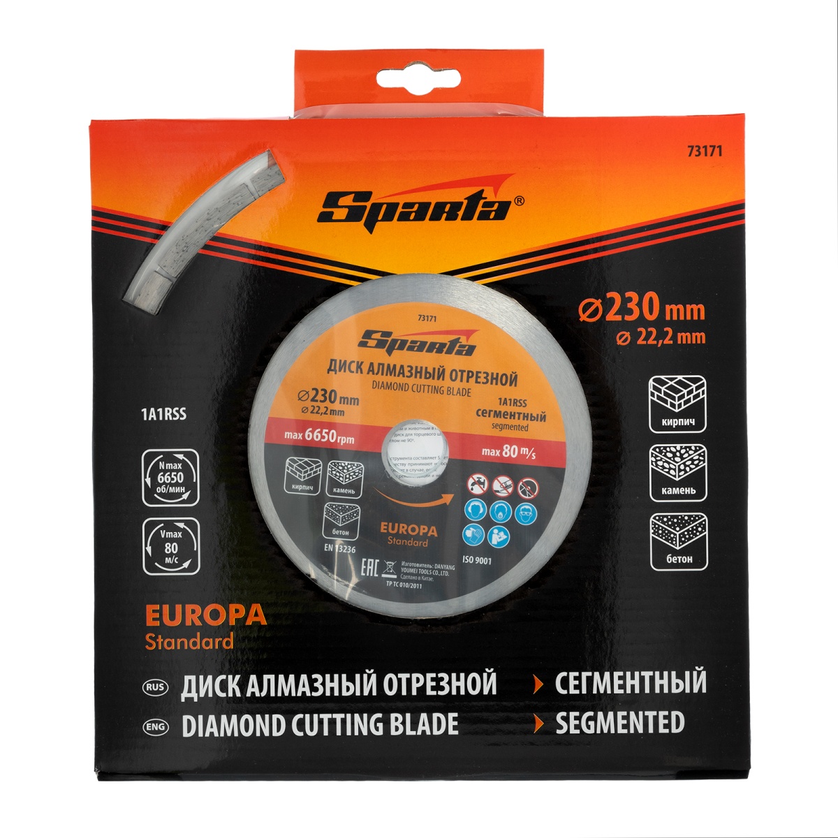 Купить Диск алмазный, отрезной сегментный, 230 х 22.2 мм, сухая резка, EUROPA Standard Sparta V1663 по лучшей цене с доставкой - интернет магазин №1 в России