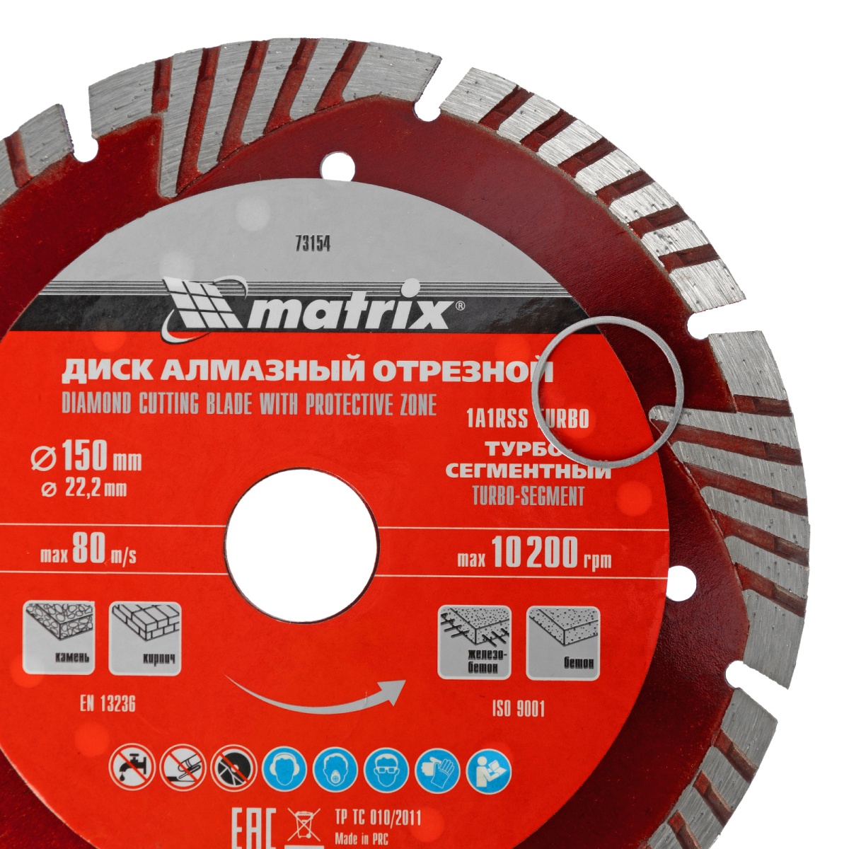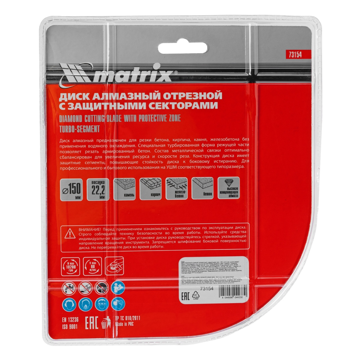 Купить Диск алмазный, отрезной сегментный с защитными сект, 150 х 22.2 мм, сухая резка Matrix Professional V1640 по лучшей цене с доставкой - интернет магазин №1 в России