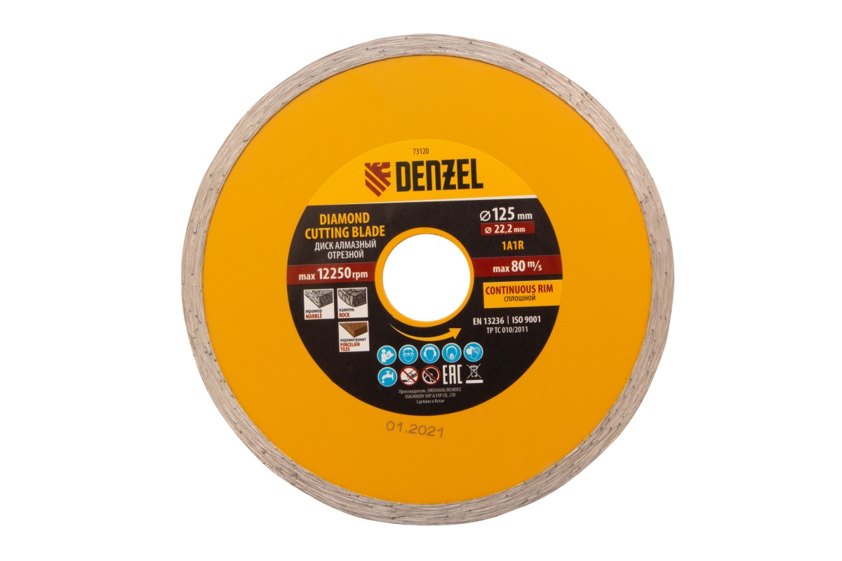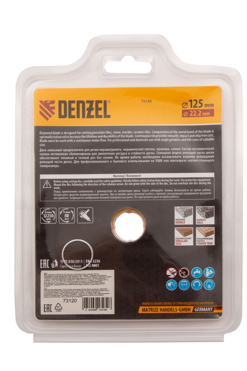 Купить Диск алмазный, отрезной сплошной, 125 х 22.2 мм, мокрая резка Denzel V1665 по лучшей цене с доставкой - интернет магазин №1 в России