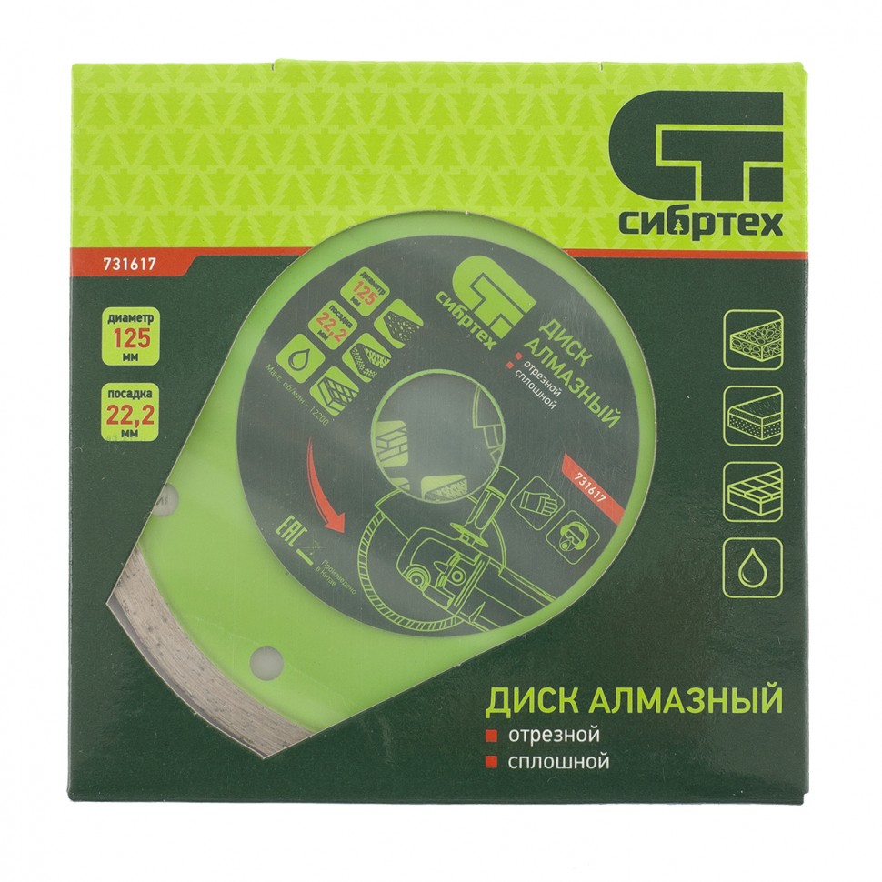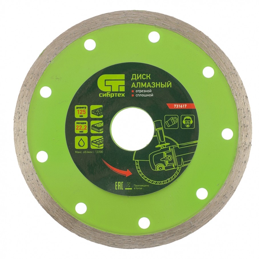 Купить Диск алмазный, отрезной сплошной, 125 х 22.2 мм, мокрая резка Сибртех V1668 по лучшей цене с доставкой - интернет магазин №1 в России