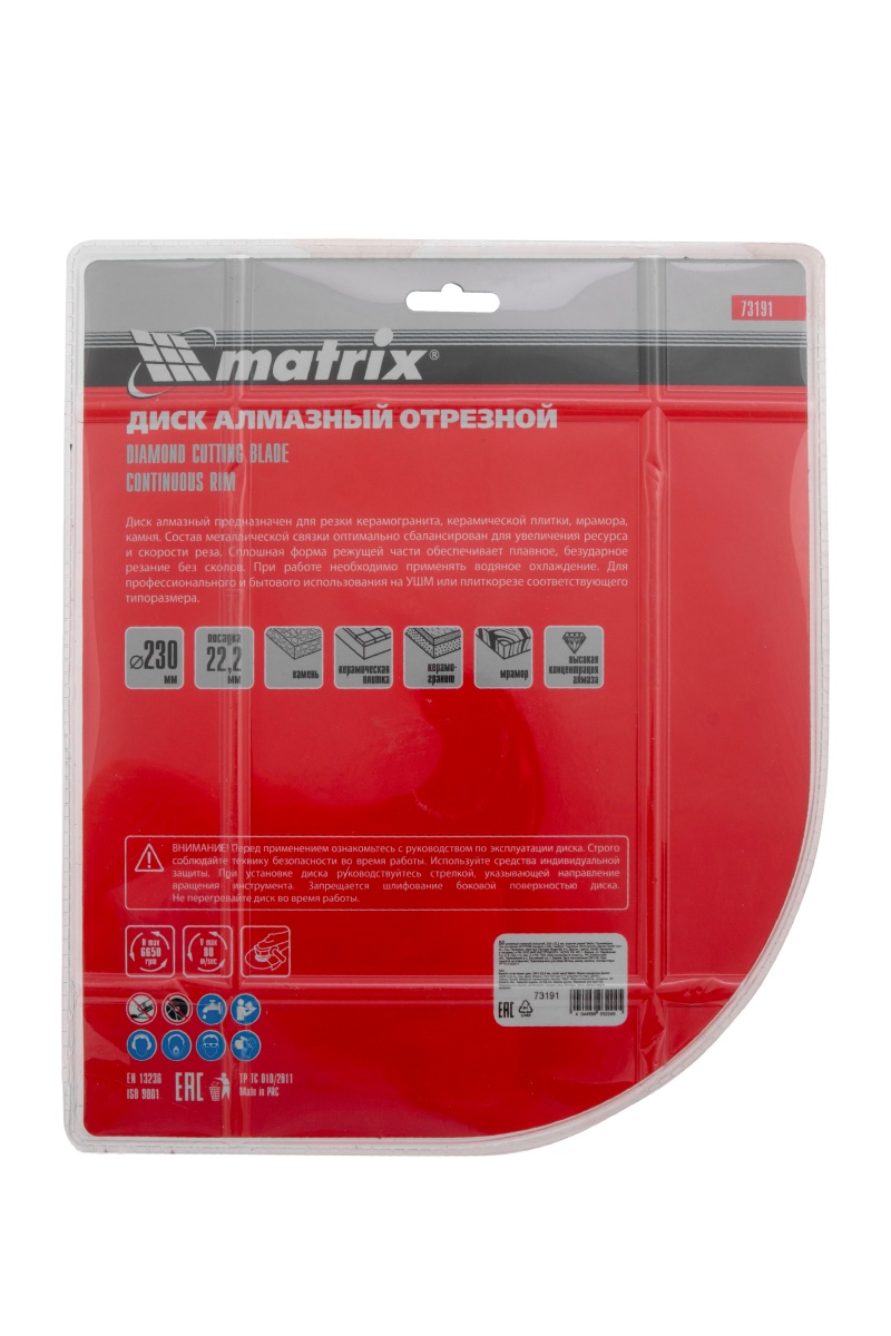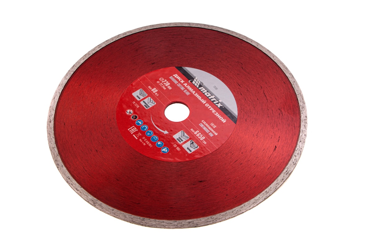 Купить Диск алмазный, отрезной сплошной, 230 х 22.2 мм, мокрая резка Matrix Professional V1672 по лучшей цене с доставкой - интернет магазин №1 в России