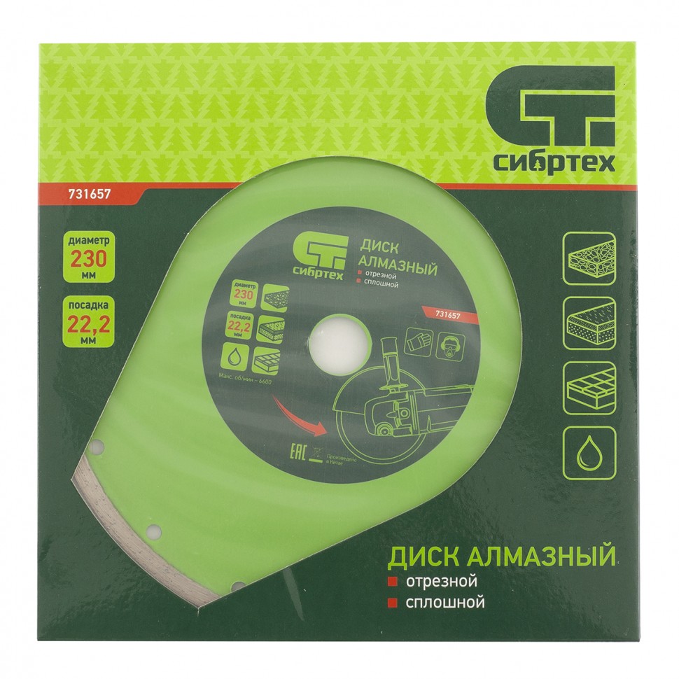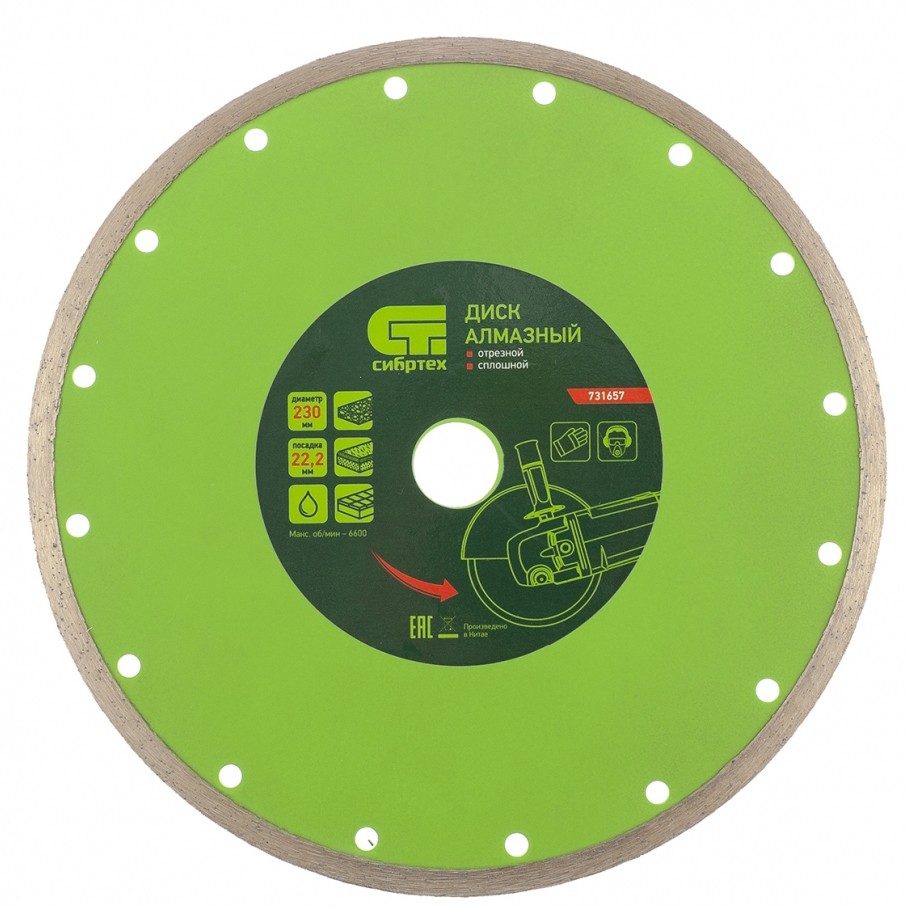 Купить Диск алмазный, отрезной сплошной, 230 х 22.2 мм, мокрая резка Сибртех V1674 по лучшей цене с доставкой - интернет магазин №1 в России