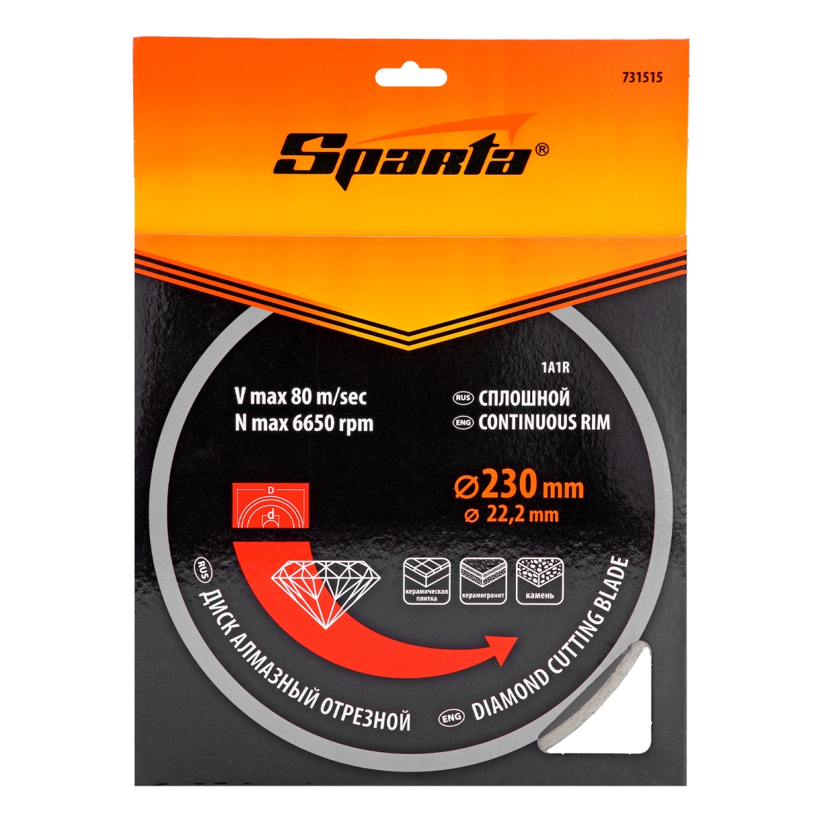 Купить Диск алмазный, отрезной сплошной, 230 х 22.2 мм, мокрая резка Sparta V1673 по лучшей цене с доставкой - интернет магазин №1 в России