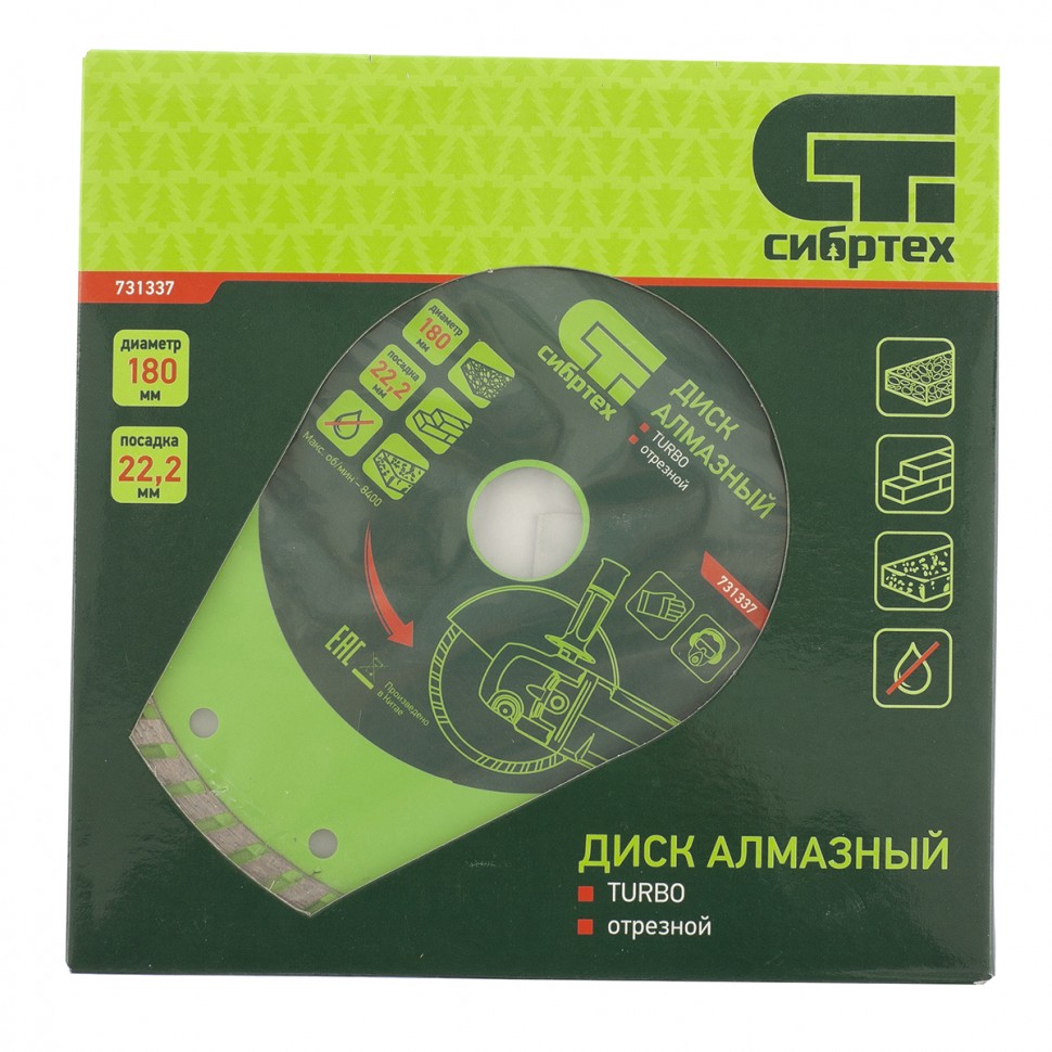 Купить Диск алмазный, отрезной Turbo, 180 х 22.2 мм, сухая резка Сибртех V1635 по лучшей цене с доставкой - интернет магазин №1 в России