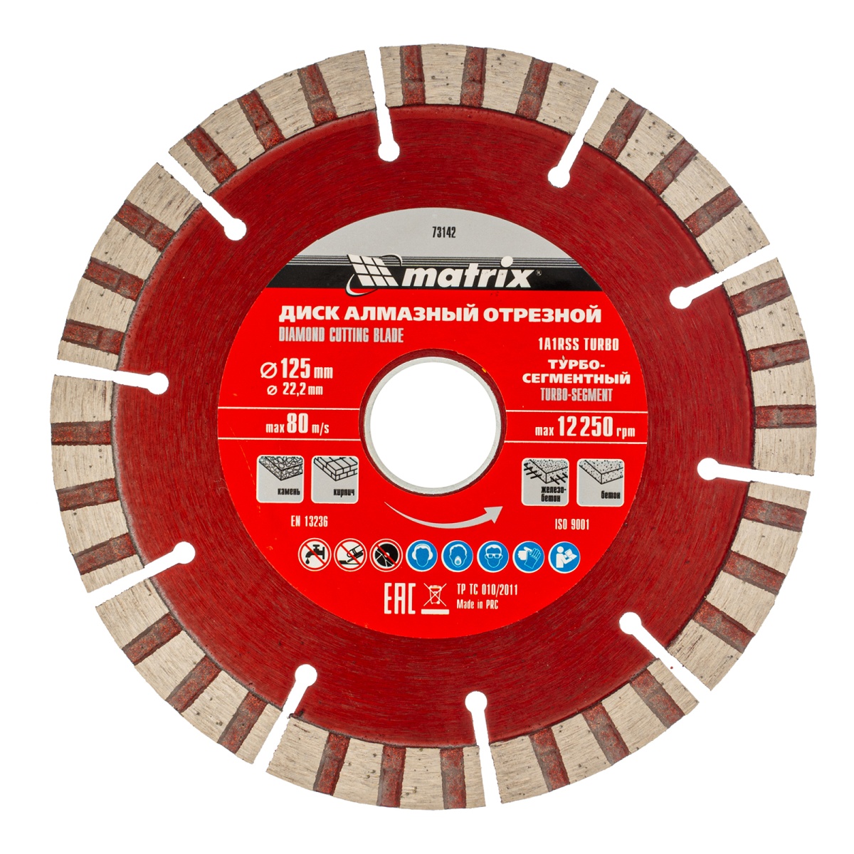 Купить Диск алмазный, отрезной Турбо-сегментный, 125 х 22.2 мм, сухая резка Matrix Professional V1677 по лучшей цене с доставкой - интернет магазин №1 в России