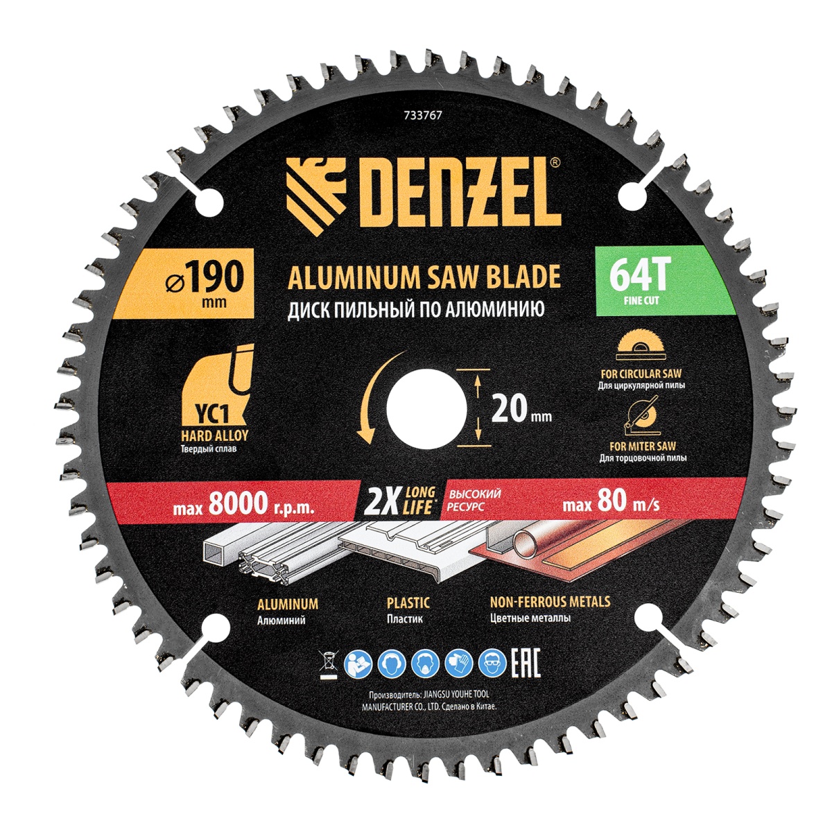 Купить Пильный диск по алюминию ф190 х 20 мм, 64 зубьев Denzel V5447 по лучшей цене с доставкой - интернет магазин №1 в России