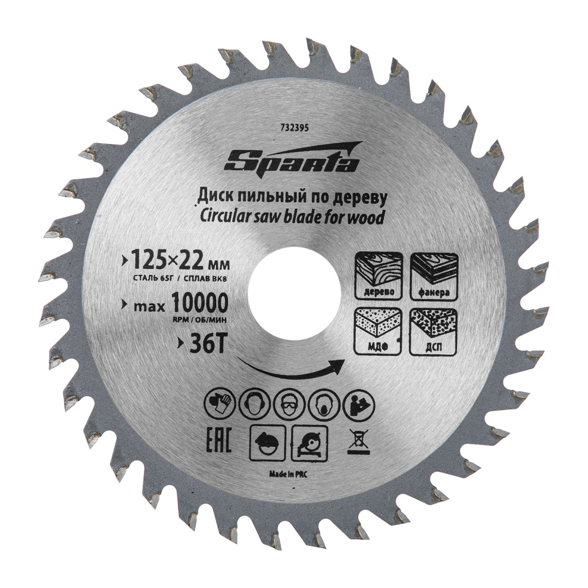 Купить Пильный диск по дереву, 125 х 22 мм, 36 зубьев Sparta V5500 по лучшей цене с доставкой - интернет магазин №1 в России