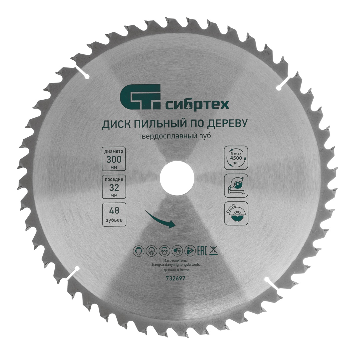 Купить Пильный диск по дереву, 300 х 32 мм, 48 зубьев Сибртех V5543 по лучшей цене с доставкой - интернет магазин №1 в России