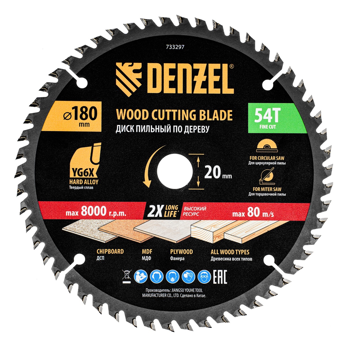 Купить Пильный диск по дереву ф180 х 20 мм, 54зубьев Denzel V5473 по лучшей цене с доставкой - интернет магазин №1 в России