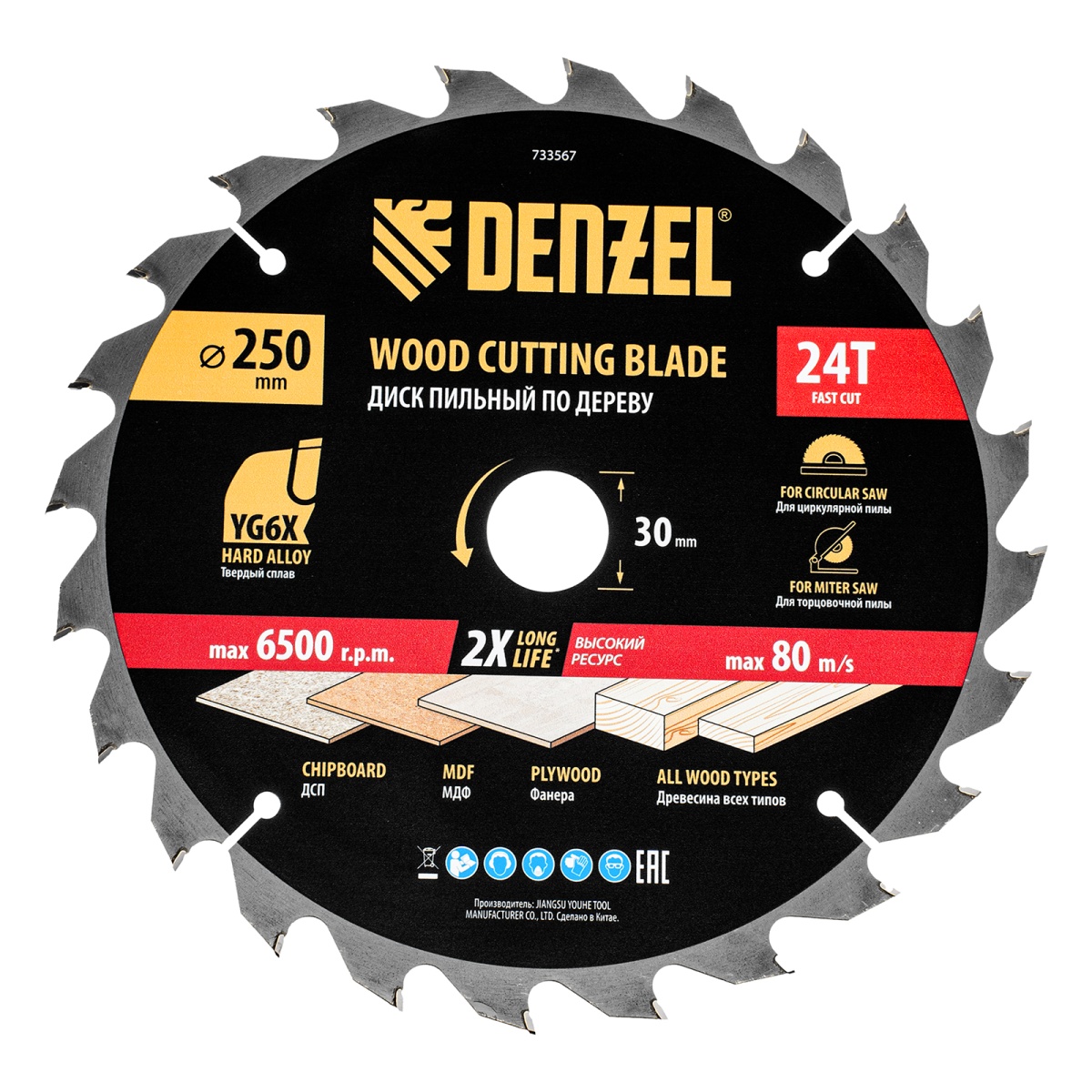 Купить Пильный диск по дереву ф250 х 30 мм, 24 зубьев Denzel V5490 по лучшей цене с доставкой - интернет магазин №1 в России