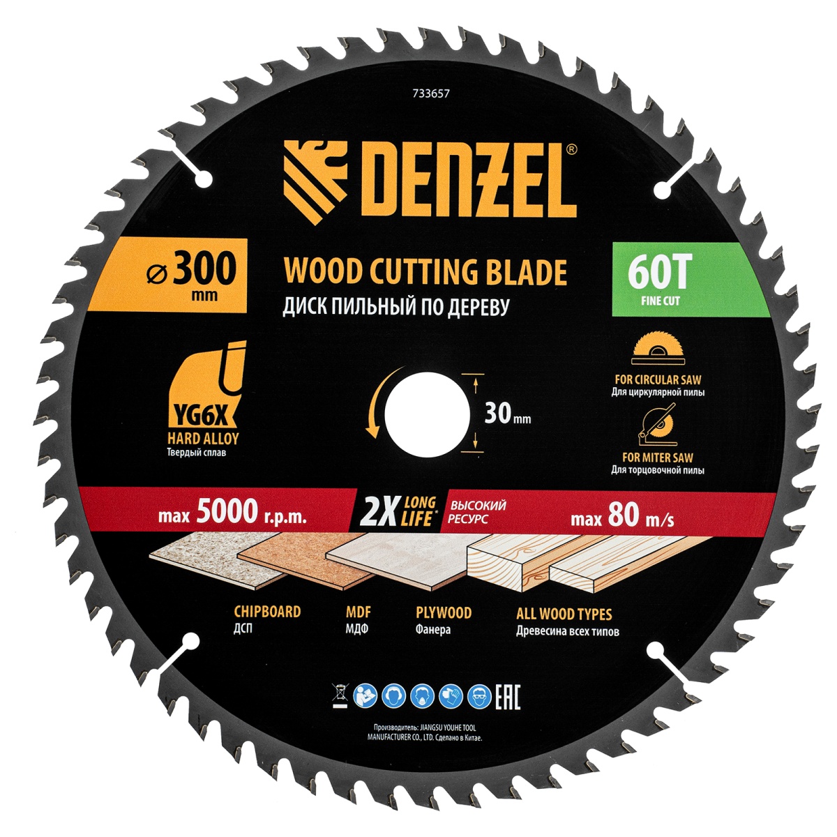 Купить Пильный диск по дереву ф300 х 30 мм, 60 зубьев Denzel V5496 по лучшей цене с доставкой - интернет магазин №1 в России