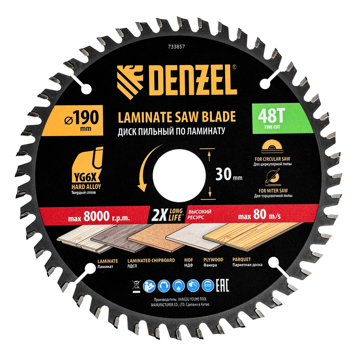 Купить Пильный диск по ламинату ф190 х 30 мм, 48 зубьев Denzel V5548 по лучшей цене с доставкой - интернет магазин №1 в России