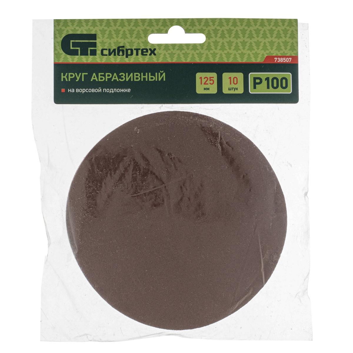 Купить Круг абразивный на ворсовой подложке под "липучку", P 100, 125 мм, 10 шт Сибртех V2951 по лучшей цене с доставкой - интернет магазин №1 в России