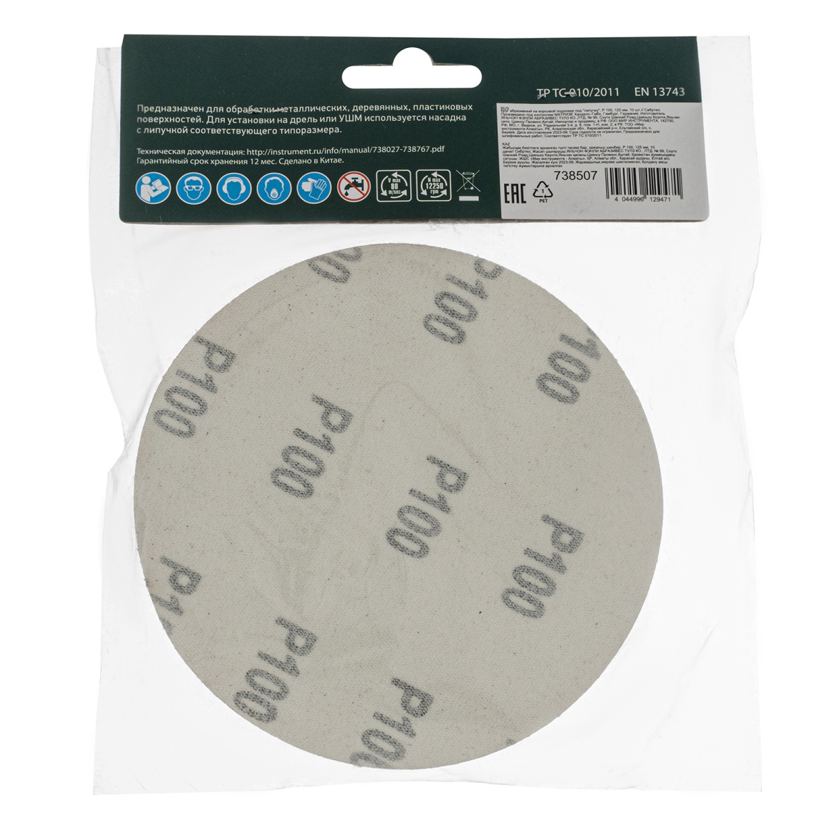 Круг абразивный на ворсовой подложке под "липучку", P 100, 125 мм, 10 шт Сибртех