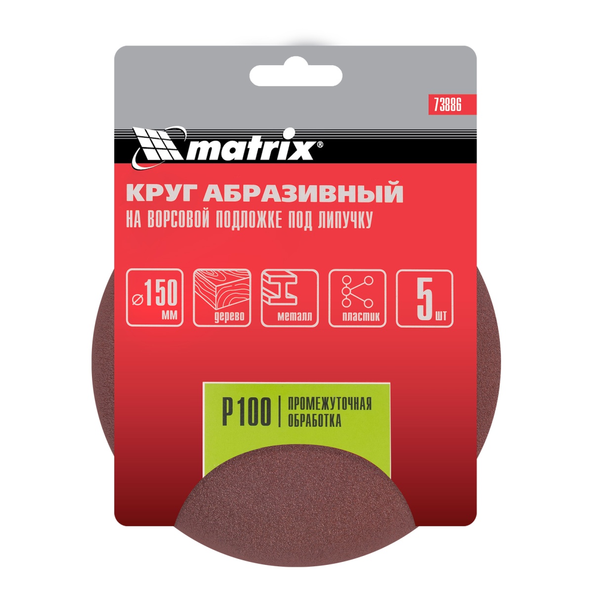 Купить Круг абразивный на ворсовой подложке под "липучку", P 100, 150 мм, 5 шт Matrix V2952 по лучшей цене с доставкой - интернет магазин №1 в России