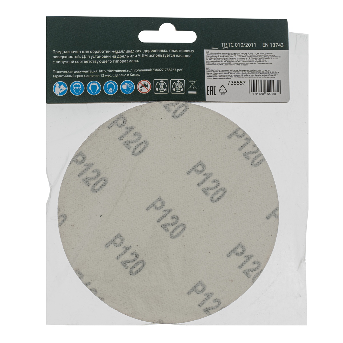 Наличие клапана для сброса давления Круг абразивный на ворсовой подложке под "липучку", P 120, 125 мм, 10 шт Сибртех
