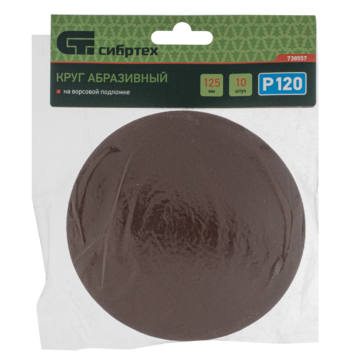 Круг абразивный на ворсовой подложке под "липучку", P 120, 125 мм, 10 шт Сибртех