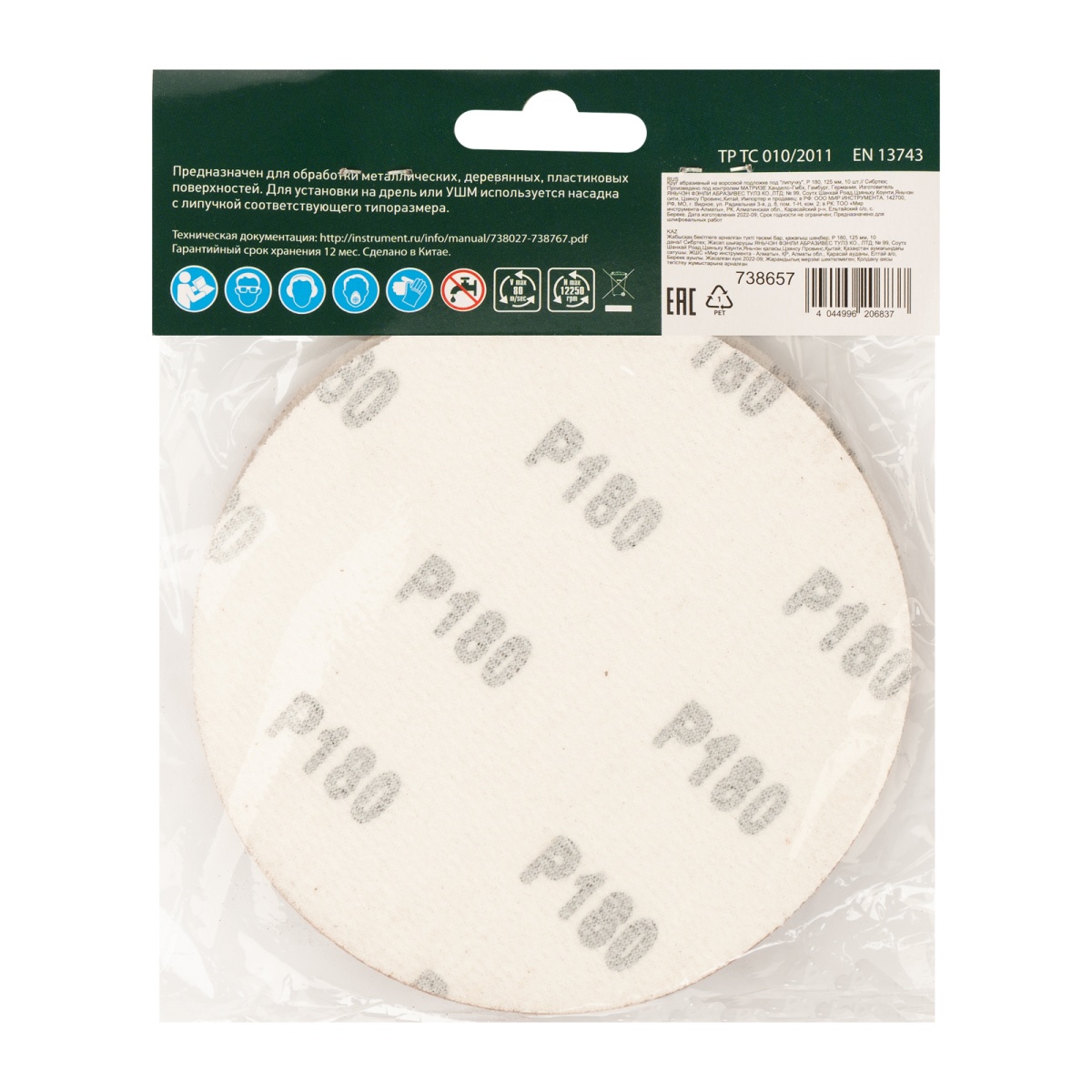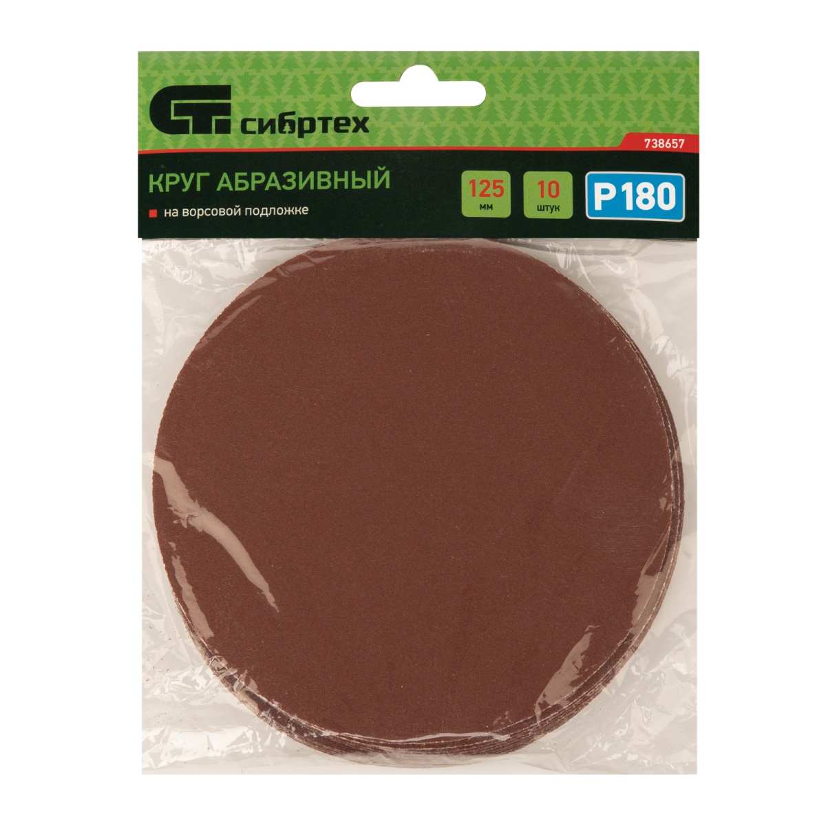 Купить Круг абразивный на ворсовой подложке под "липучку", P 180, 125 мм, 10 шт Сибртех V2960 по лучшей цене с доставкой - интернет магазин №1 в России