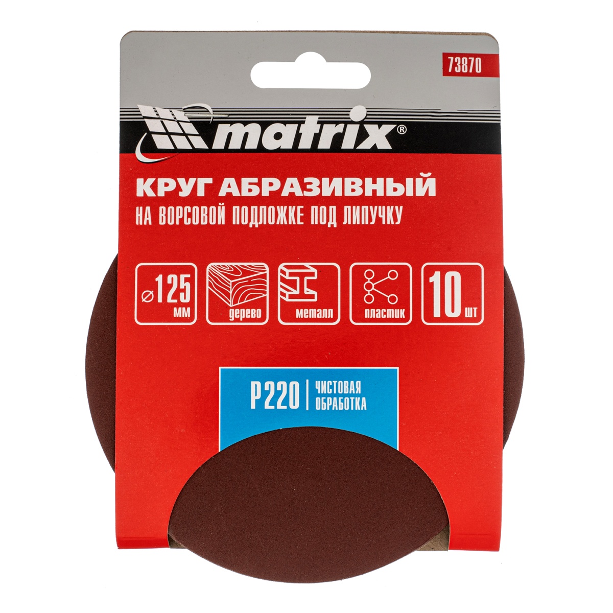 Купить Круг абразивный на ворсовой подложке под "липучку", P 220, 125 мм, 10 шт Matrix V2961 по лучшей цене с доставкой - интернет магазин №1 в России