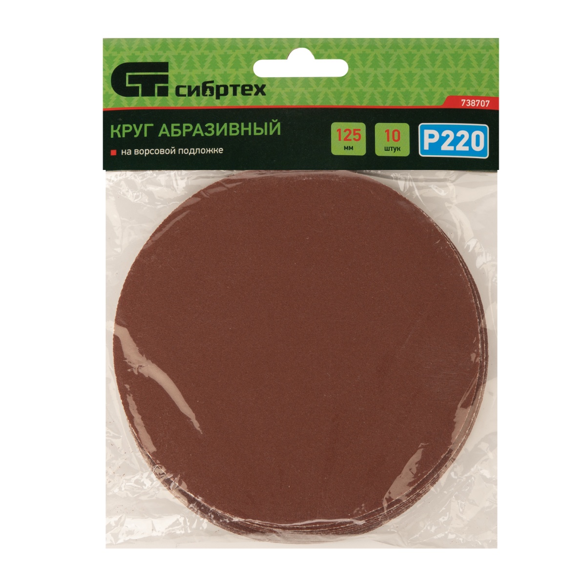 Купить Круг абразивный на ворсовой подложке под "липучку", P 220, 125 мм, 10 шт Сибртех V2962 по лучшей цене с доставкой - интернет магазин №1 в России