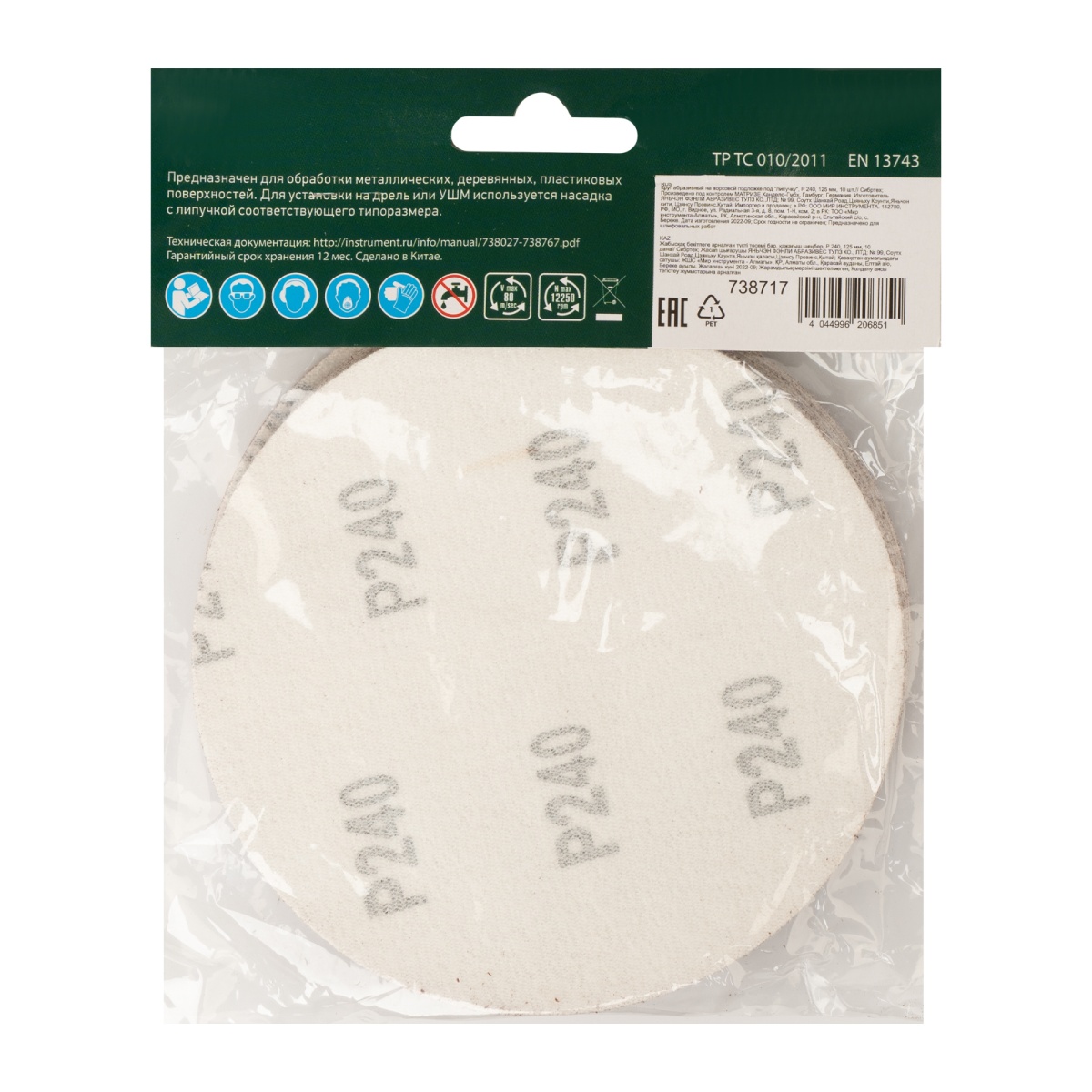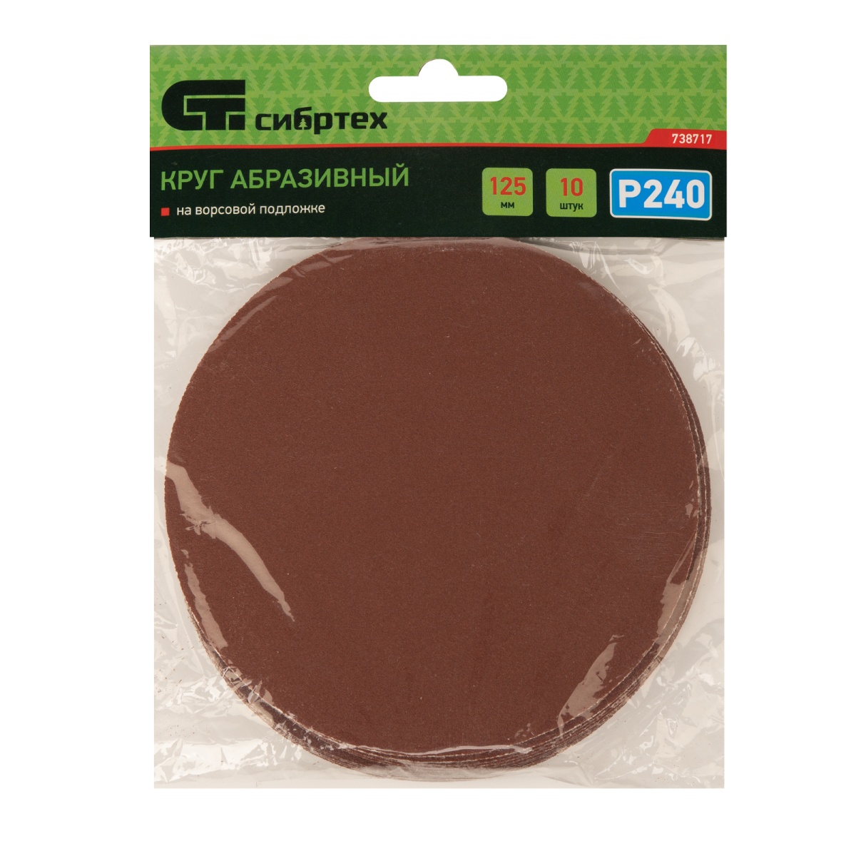 Купить Круг абразивный на ворсовой подложке под "липучку", P 240, 125 мм, 10 шт Сибртех V2965 по лучшей цене с доставкой - интернет магазин №1 в России