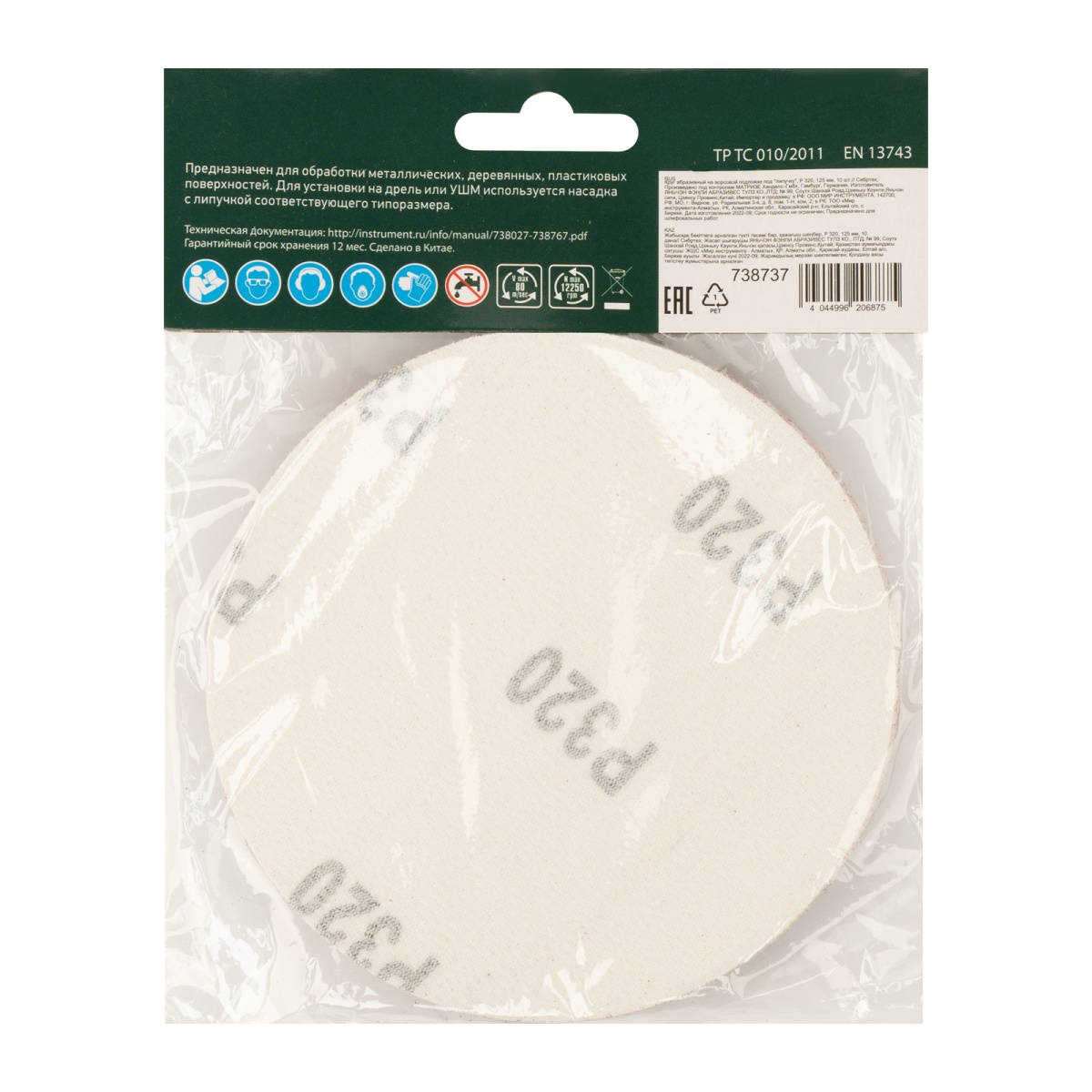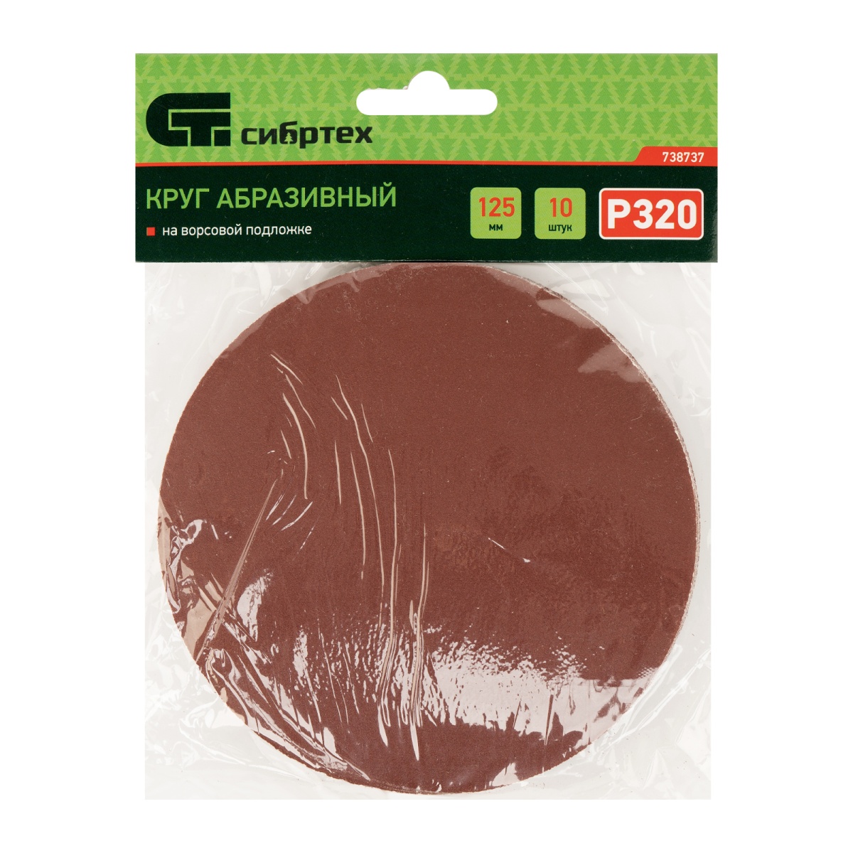 Купить Круг абразивный на ворсовой подложке под "липучку", P 320, 125 мм, 10 шт Сибртех V2969 по лучшей цене с доставкой - интернет магазин №1 в России