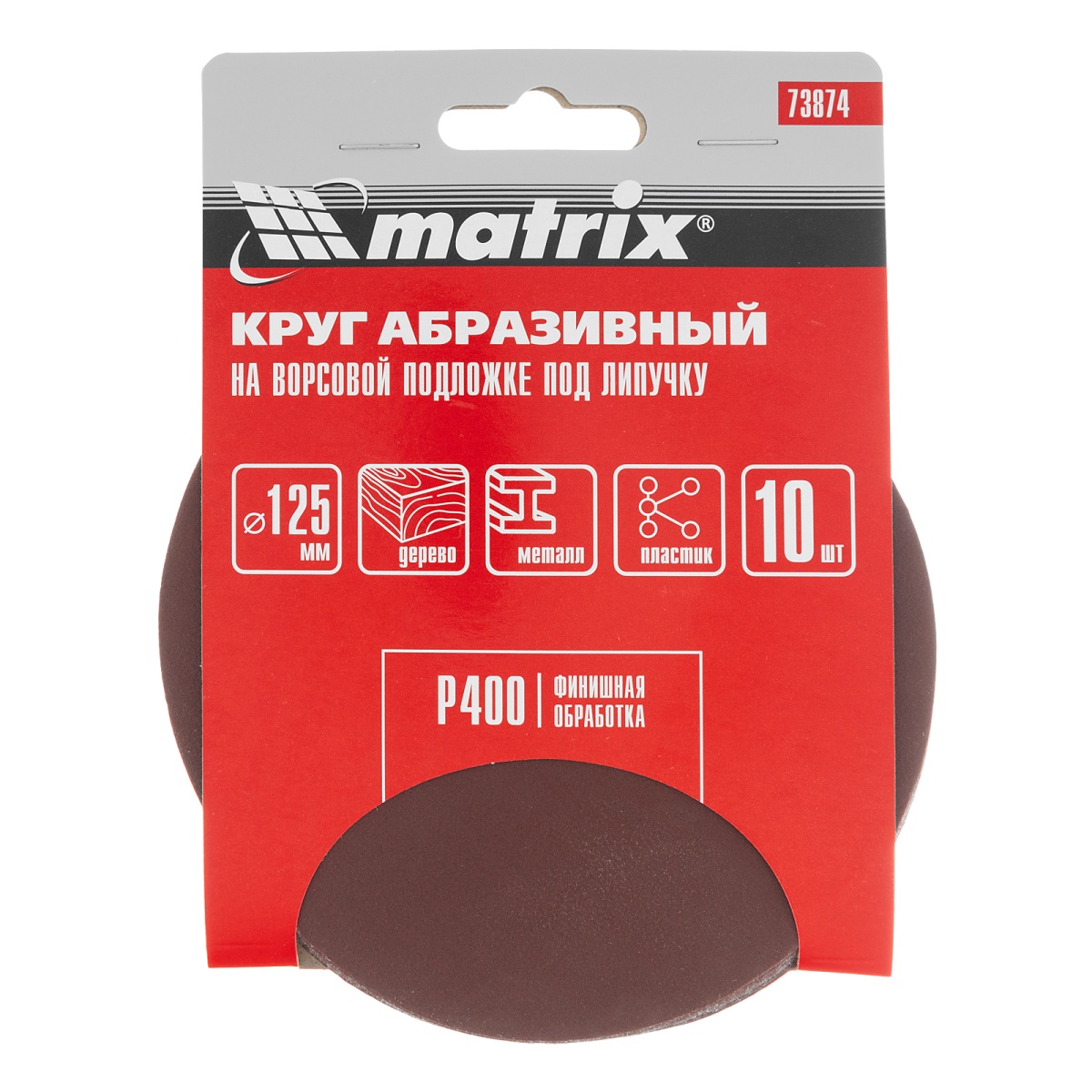Купить Круг абразивный на ворсовой подложке под "липучку", P 400, 125 мм, 10 шт Matrix V2975 по лучшей цене с доставкой - интернет магазин №1 в России