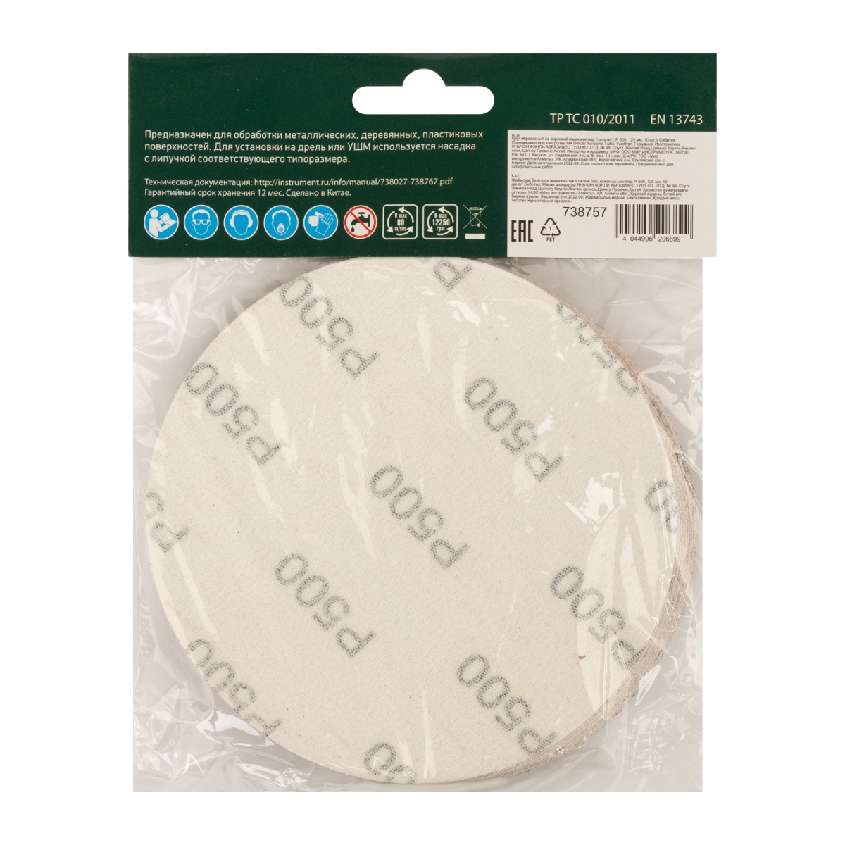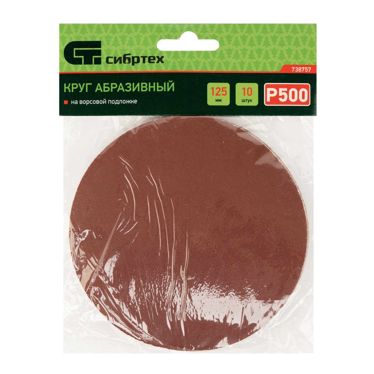 Купить Круг абразивный на ворсовой подложке под "липучку", P 500, 125 мм, 10 шт Сибртех V2978 по лучшей цене с доставкой - интернет магазин №1 в России