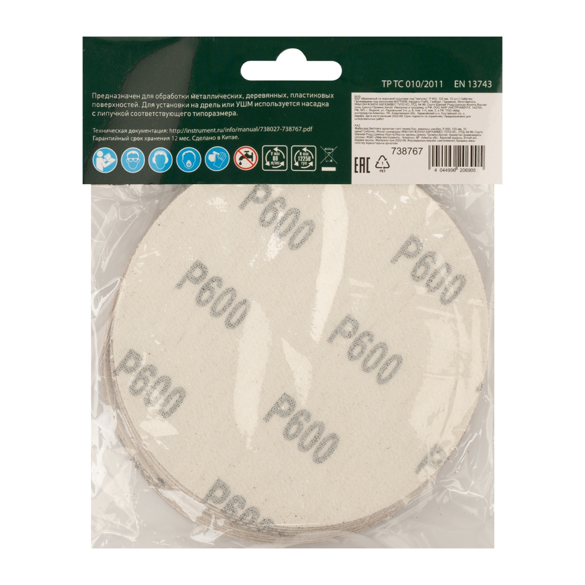 Купить Круг абразивный на ворсовой подложке под "липучку", P 600, 125 мм, 10 шт Сибртех V2982 по лучшей цене с доставкой - интернет магазин №1 в России