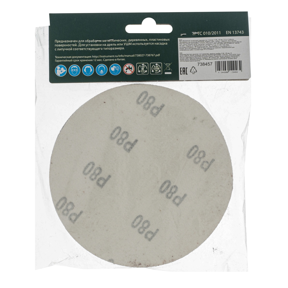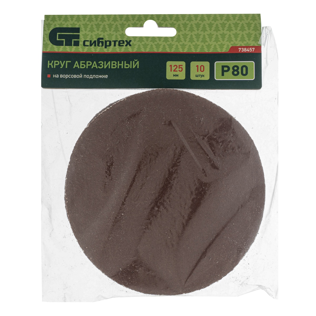 Купить Круг абразивный на ворсовой подложке под "липучку", P 80, 125 мм, 10 шт Сибртех V2985 по лучшей цене с доставкой - интернет магазин №1 в России